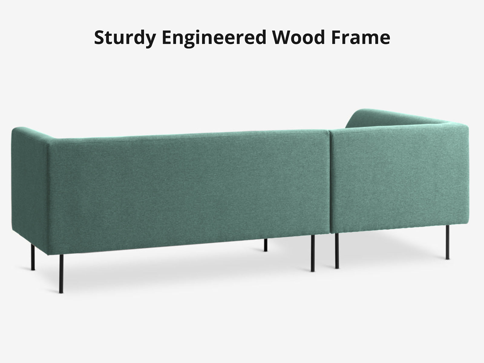 The Judith Sectional Sofa with Right Chaise offers you plenty of space. The sofa impresses with a timeless and modern design that sets a trendy accent in the living room. The armrests, seat and back are padded and invite you to relax, offering a high, very comfortable seating comfort. The sofa can be freely placed in the room thanks to the covered back. The elegant woven fabric cover in green has a great feel and looks very elegant. The sofa has filigree feet made of black, powder-coated metal, which complete the modern design. Thanks to the simple, elegant design, the sofa can be individually combined and fits many interior styles.