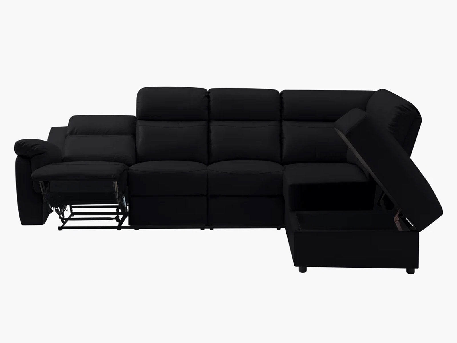 Ronae Corner Recliner Sofa combines modern contemporary style with functionality for your living room. Featuring a recliner with an easy pull device, adjust the backrest for perfect comfort while reading, watching TV, or napping. This 3-seater sofa includes a flipped middle backrest with two cup holders and convenient storage at the end of the chaise seat. Designed with expert craftsmanship, it offers comfortable seating and pillow-top armrests for added relaxation.