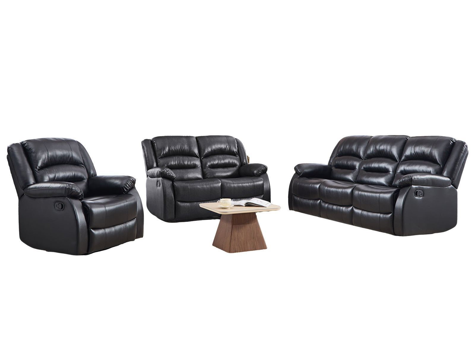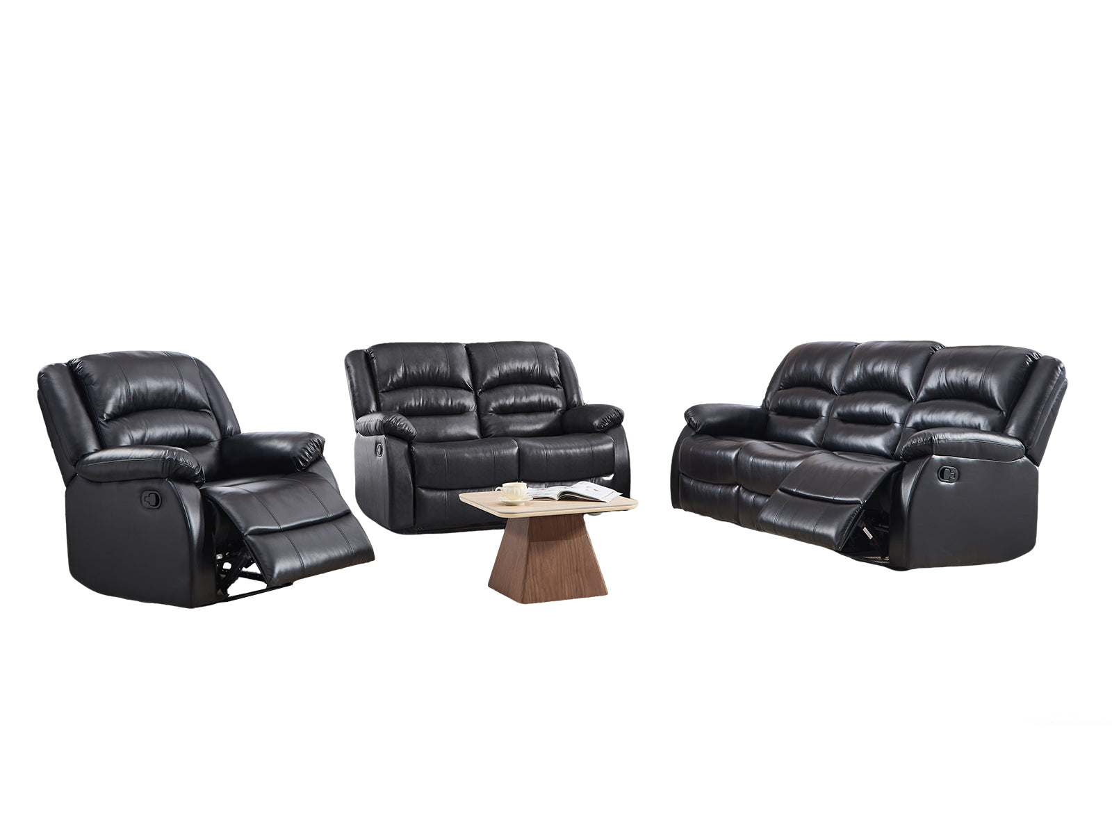3+2+1 Sofa Set | Black Faux Leather | Manual Recline