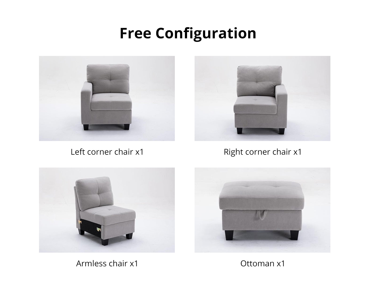 Paxton Chenille Modular Sofa Light Grey 3+1