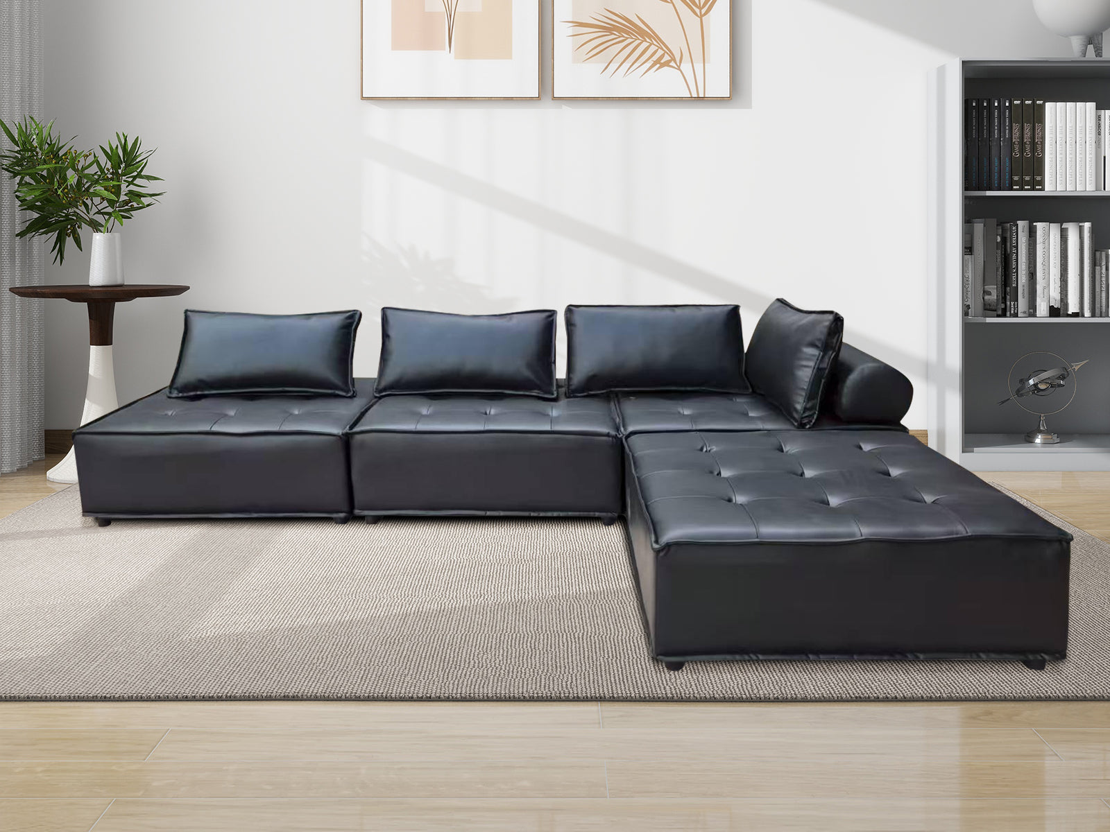 This sectional sofa combines modern design with comfort, making it an ideal choice for your living room. Made of high quality faux PU, it is durable and soft to the touch, ensuring you a comfortable experience in any season. Its solid frame construction padded foam filling provides excellent support. The sofa's L-shaped design makes the most of the space and is perfect for a variety of floor plans, serving as a centerpiece for family gatherings or adding a touch of style to a small apartment. The ottoman is movable to suit your needs. Whether you're enjoying a lazy weekend or hosting friends and family, this sofa is the perfect companion. Immediately add a touch of warmth and style to your home, creating a comfortable and enjoyable living space for you and your family.