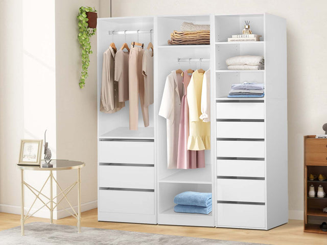 PR72201 Mattone 3-Draw Hanging Wardrobe and Open Wardrobe and 3+6D Wardrobe