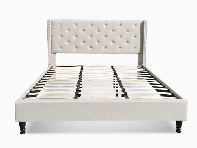 Super King Bed Frame | Beige Linen Upholstery | Elegant High Tufted Headboard