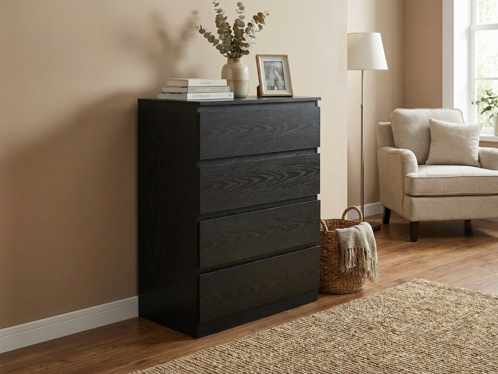 Chest of 4 Drawers | Black Finish | Sleek and Practical Storage
