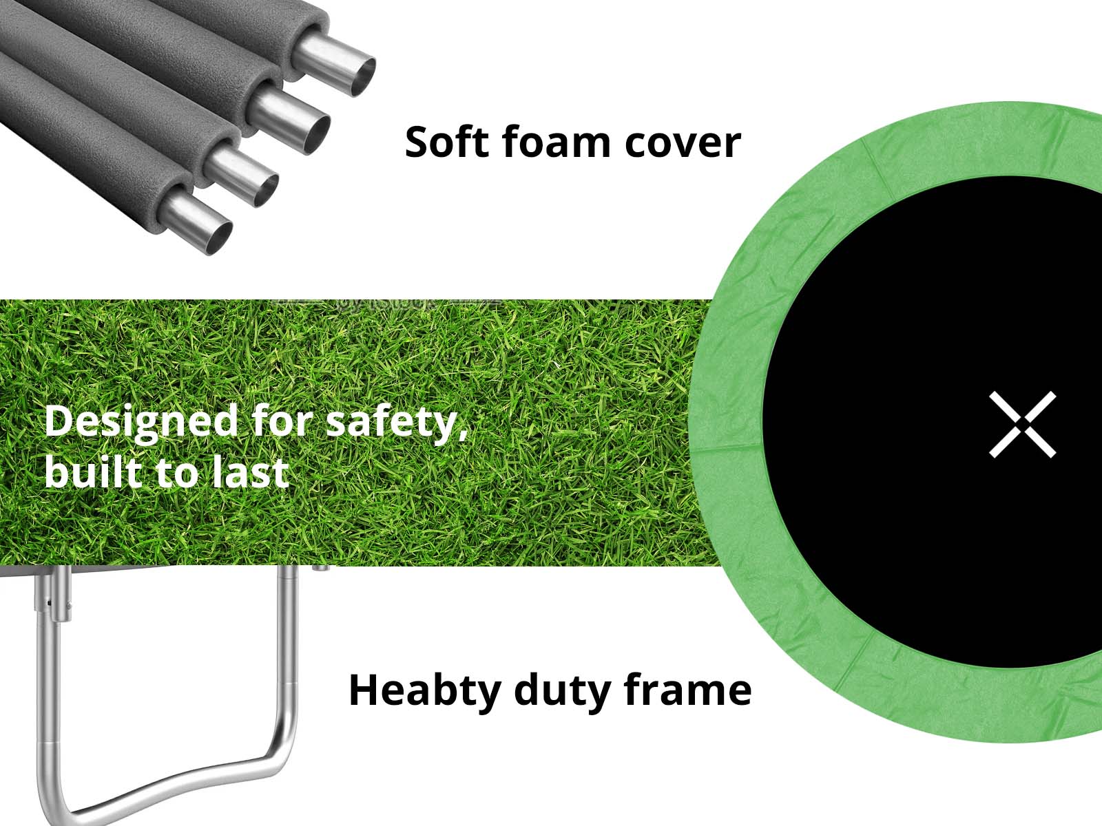 Outdoor Trampoline | Green & Black | Safe Enclosure & Sturdy Frame