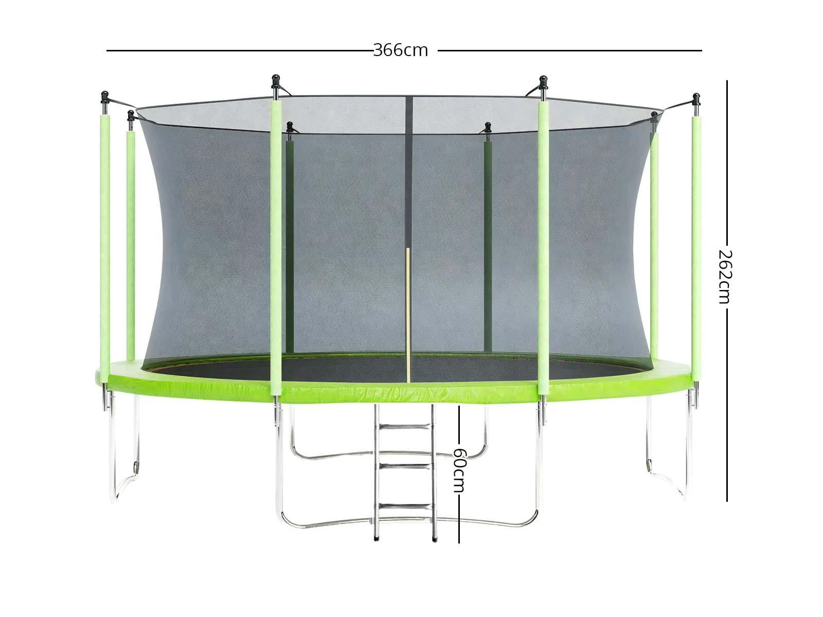 Trampoline Dimension: 366 cm (Dia) x 262 cm (H)