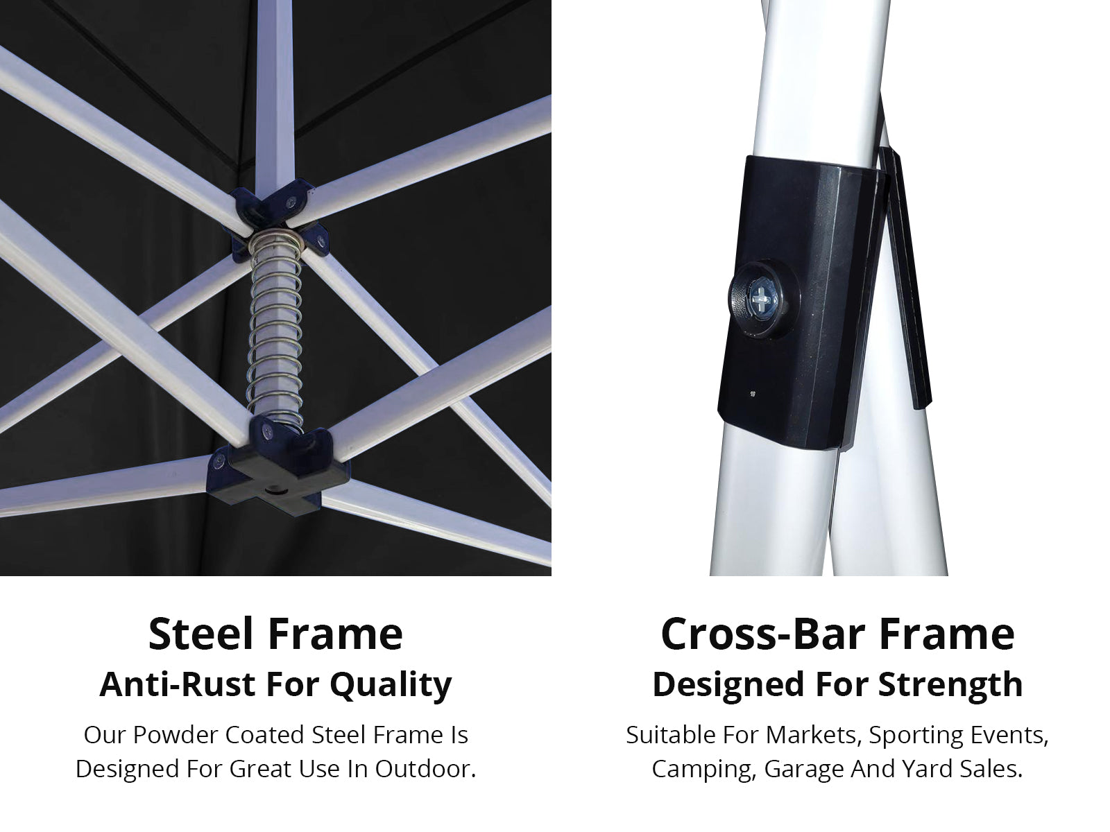 Featuring high density, long lasting PVC coating oxford fabric with effective UV and water repellent treatment. With an extra thick and quick-to-erect power coated frame equiped with Strong hexagonal legs and structure, is very simple to set-up and extremely durable. Fitted with quick and convenient velcro attachments, easily release button and smoothly glide on nylon insert for effortless set up, this gazebo is design to make things happen instantly.