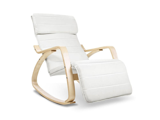 Enjoy the perfect blend of comfort and style with the Bentwood Rocking Armchair in beige. Designed with a sturdy bentwood frame. This chair allows you to sit or gently rock for total relaxation. Upholstered in breathable cotton fabric with 4cm high-density foam. It offers supportive cushioning for everyday use. The adjustable footrest lets you find the ideal position, while the headcushion adds more comfort. A removable, washable zipper cover keeps the chair fresh and easy to maintain. Lightweight yet durable, this versatile rocking armchair is a timeless addition to any living room, bedroom, or office space.