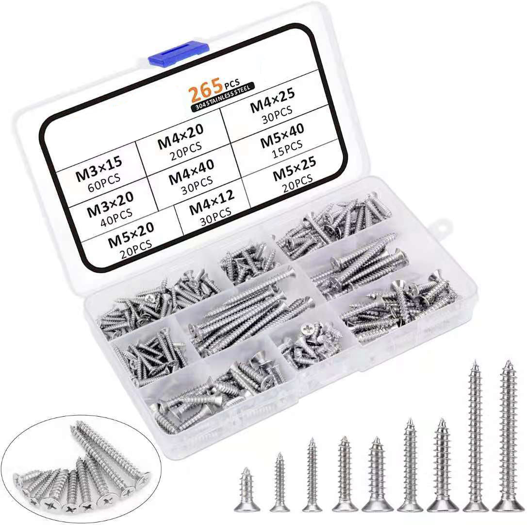 265pc Stainless Steel Phillips Flat Head Self-Tapping Screws Set