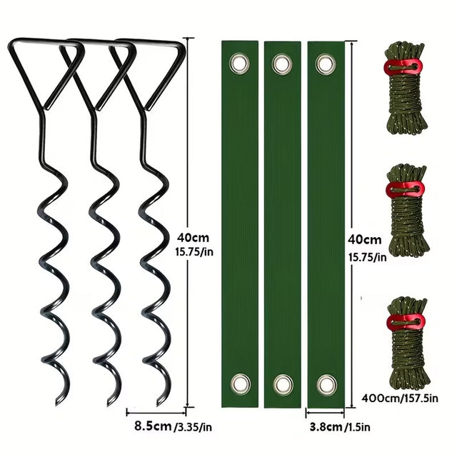 Secure your trees and outdoor equipment with this heavy-duty 9-piece spiral stake kit. Featuring 1000 lbs pull force capacity and high-visibility reflective ropes, it provides a stable and safe anchoring solution for gardens and campsites.