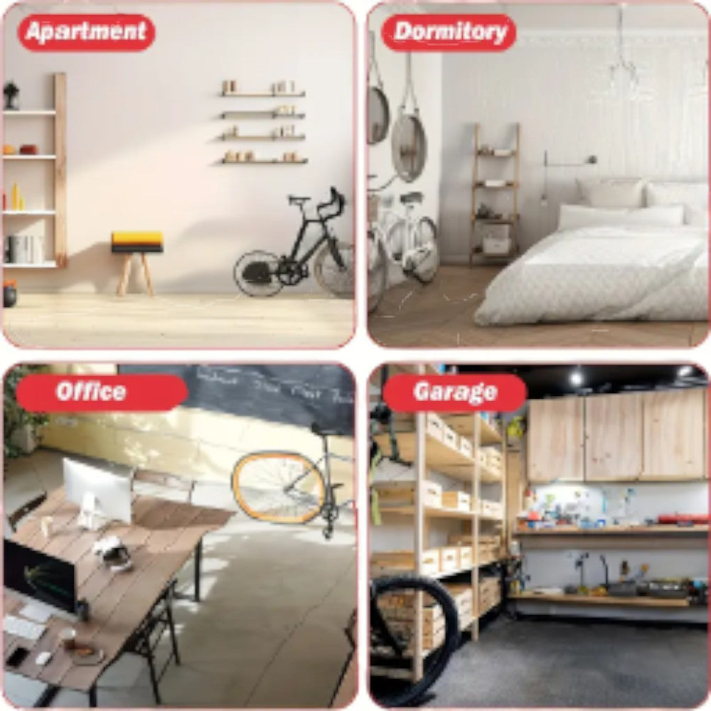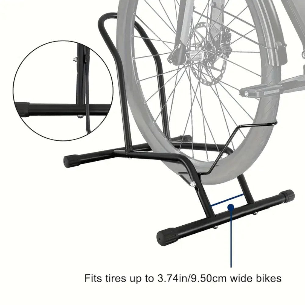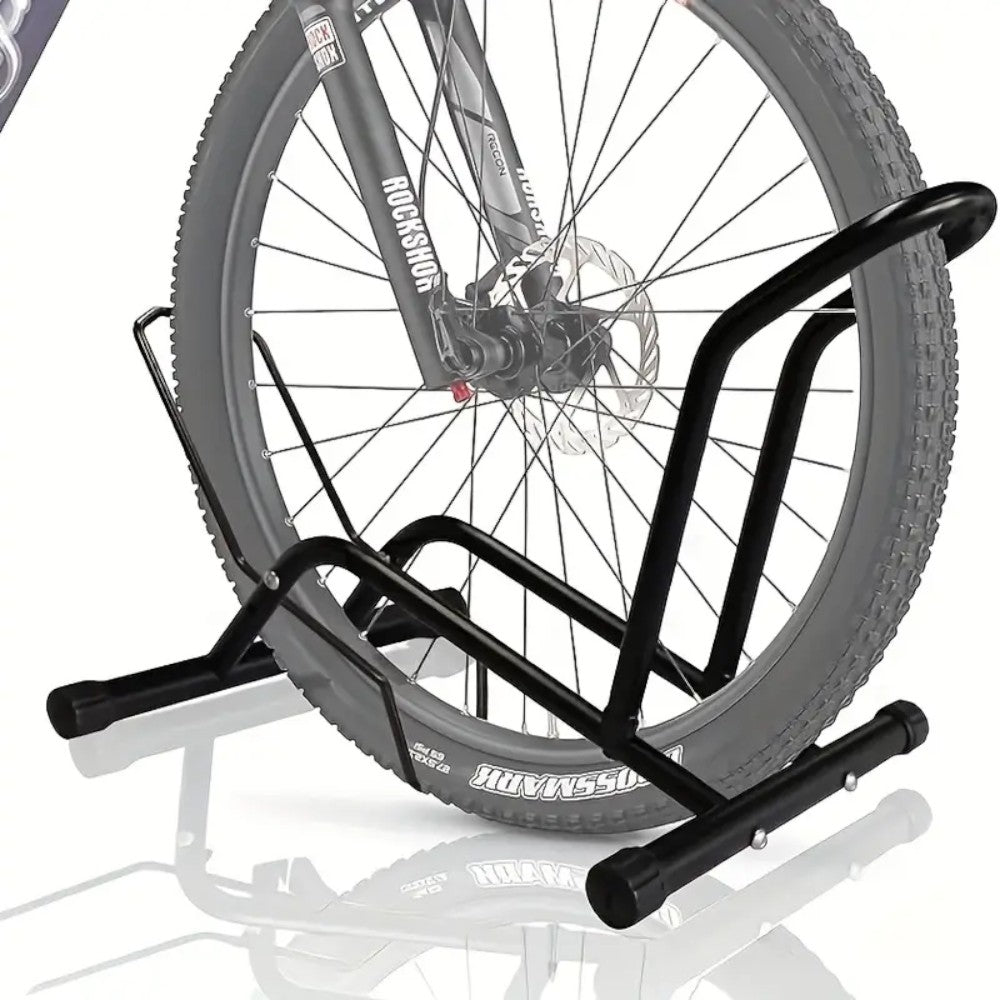 This adjustable floor bicycle rack provides stable, no-lift parking for your bike using a simple push-in mechanism. Suitable for both front and rear wheel docking, it fits most bikes up to 9.5 cm wide. With a durable steel frame and anti-scratch pads, it’s perfect for versatile indoor storage.