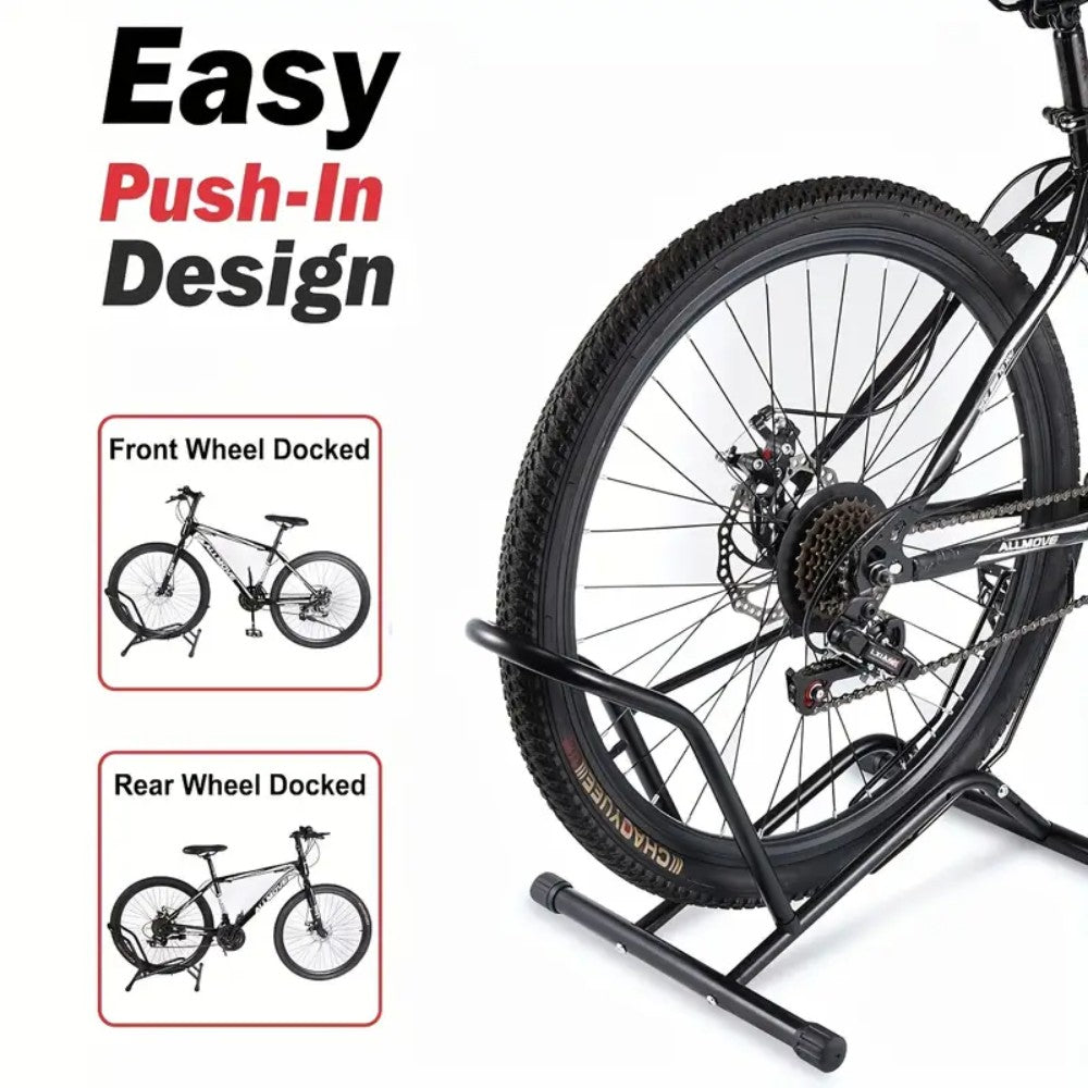 1. The push-in design allows effortless parking by simply rolling the bike into the stand without lifting.