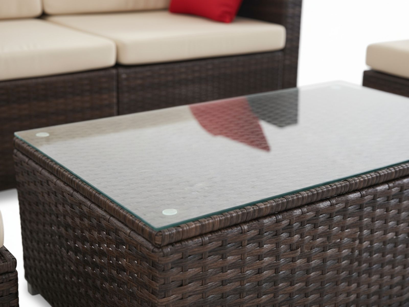It's time to give your backyard a complete makeover with our stylish yet affordable hand-woven PE wicker outdoor Sofa Set. Our outdoor set promises luxurious and spacious comfort matched with long-term durability and robust use in any weather condition. With its PE wicker handiwork and heavy-duty steel frame, the stylish outdoor set is made to last. The removable cushion cover is easy to clean. The table also comes with a 5 mm-thick tempered glass top for safety, while a corner table adds a handy convenience. Not least, the entire set can be easily configured to any arrangement that appeals to you.