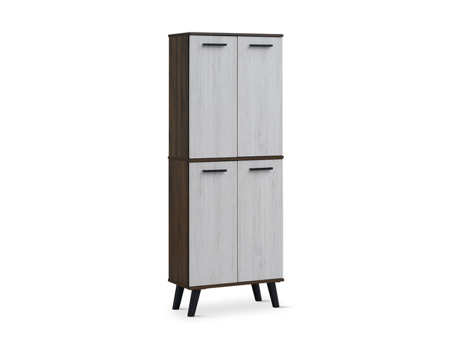 Organize your footwear in style with the Dallars 4-Door Shoe Storage Cabinet. Featuring a walnut and washed oak finish. This cabinet is the ideal solution for compact spaces needing large storage. it delivers a sleek, timeless look that blends seamlessly with any interior. Inside, eight spacious shelves provide room for multiple pairs of shoes. Easy to keep your entrance tidy and organised. A smart ventilation gap between the doors and side panels ensures airflow, helping keep footwear fresh and odour-free. Stylish and functional, this cabinet is perfect for modern homes.
