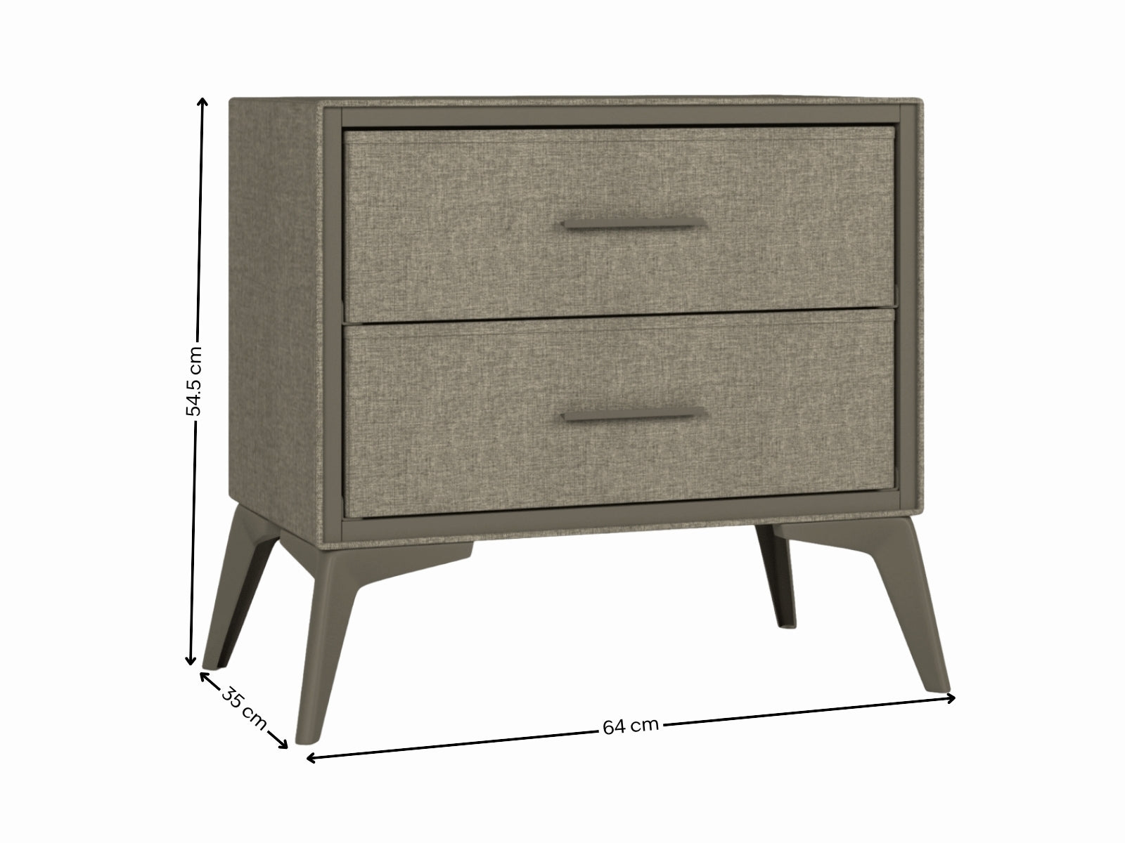 Upgrade your bedroom with elegant faux linen furniture from the Delani Collection. As a part of the collection, this Delani Bedside Table features a sturdy metal frame wrapped in soft-touch faux linen, bringing a refined look to any space. The 2 non-woven drawers each hold up to 5 kg—perfect for storing books, electronics, and essentials. Sleek aluminium alloy handles add a modern finish. The compact size fits neatly beside your bed. Stylish and functional, it’s a smart storage solution for any home.