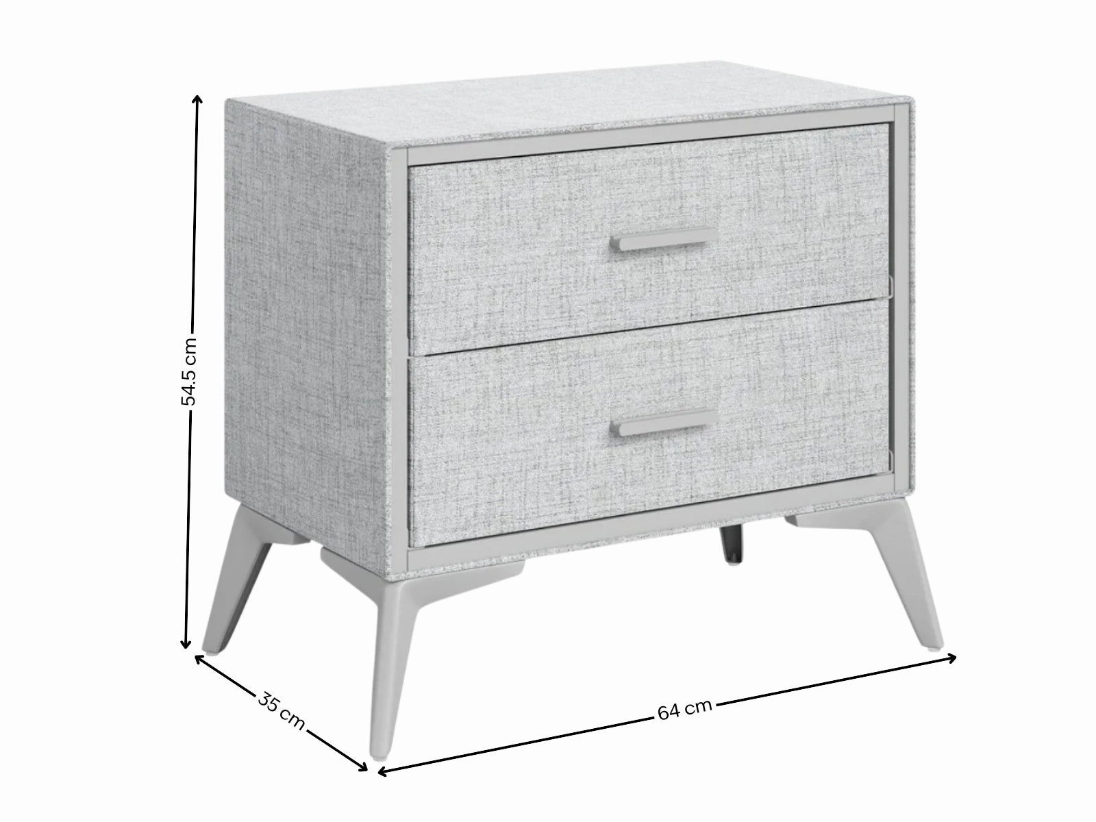 2-Drawer Bedside Table | Grey Faux-Linen | Metal Frame & Alloy Handles