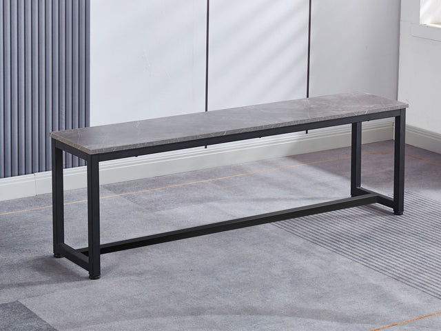 The Grey Marble Look Dining Bench blends modern style with practical design. Built with a particle board seat in a marble-textured melamine finish and supported by a reinforced black powder-coated metal frame. It offers both strength and durability. At 140 cm, this versatile bench works as a dining seat, hallway bench, or bed-end stool. With its sleek look and sturdy build, the Grey Marble Look Dining Bench is a stylish and functional choice that complements a wide range of interiors.