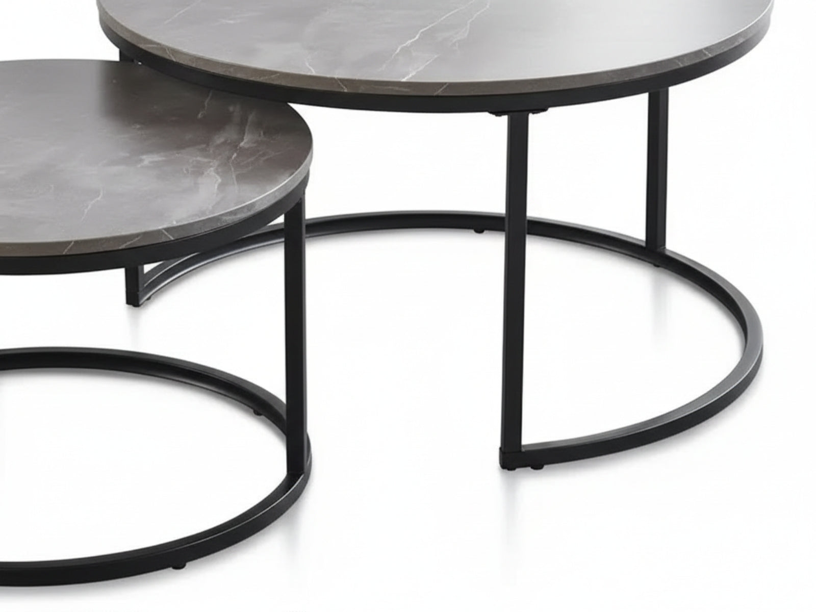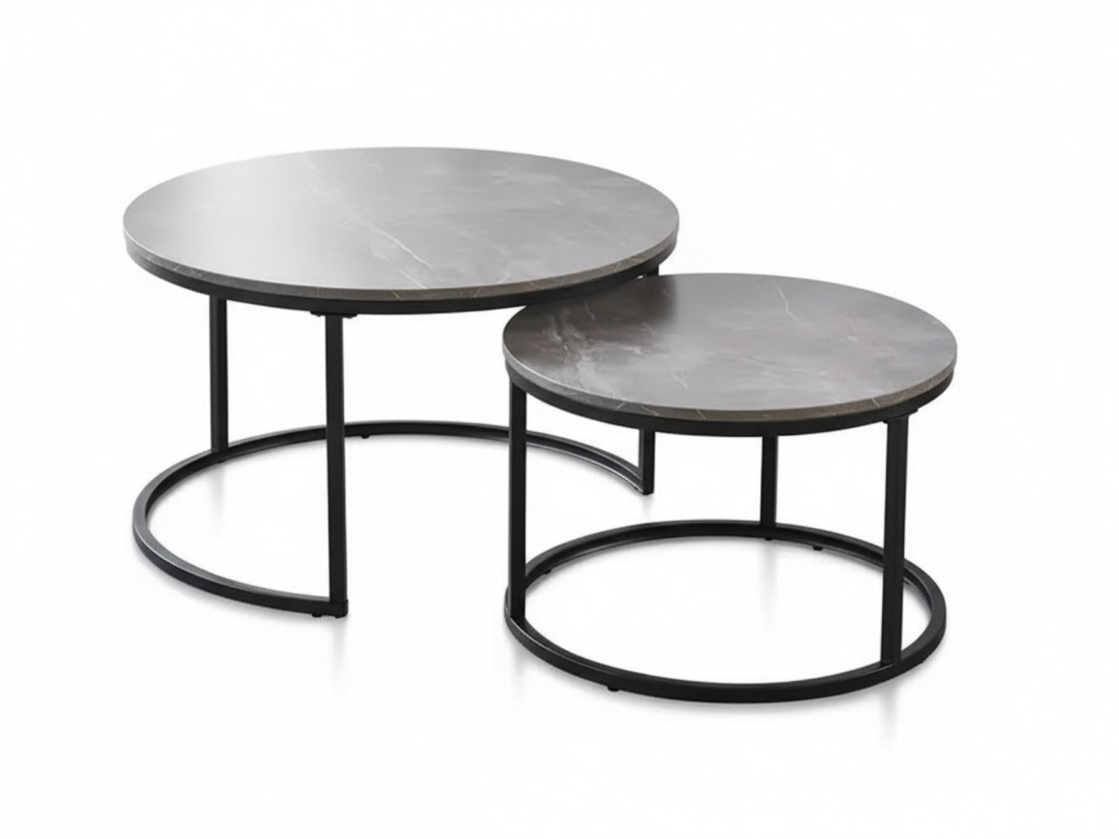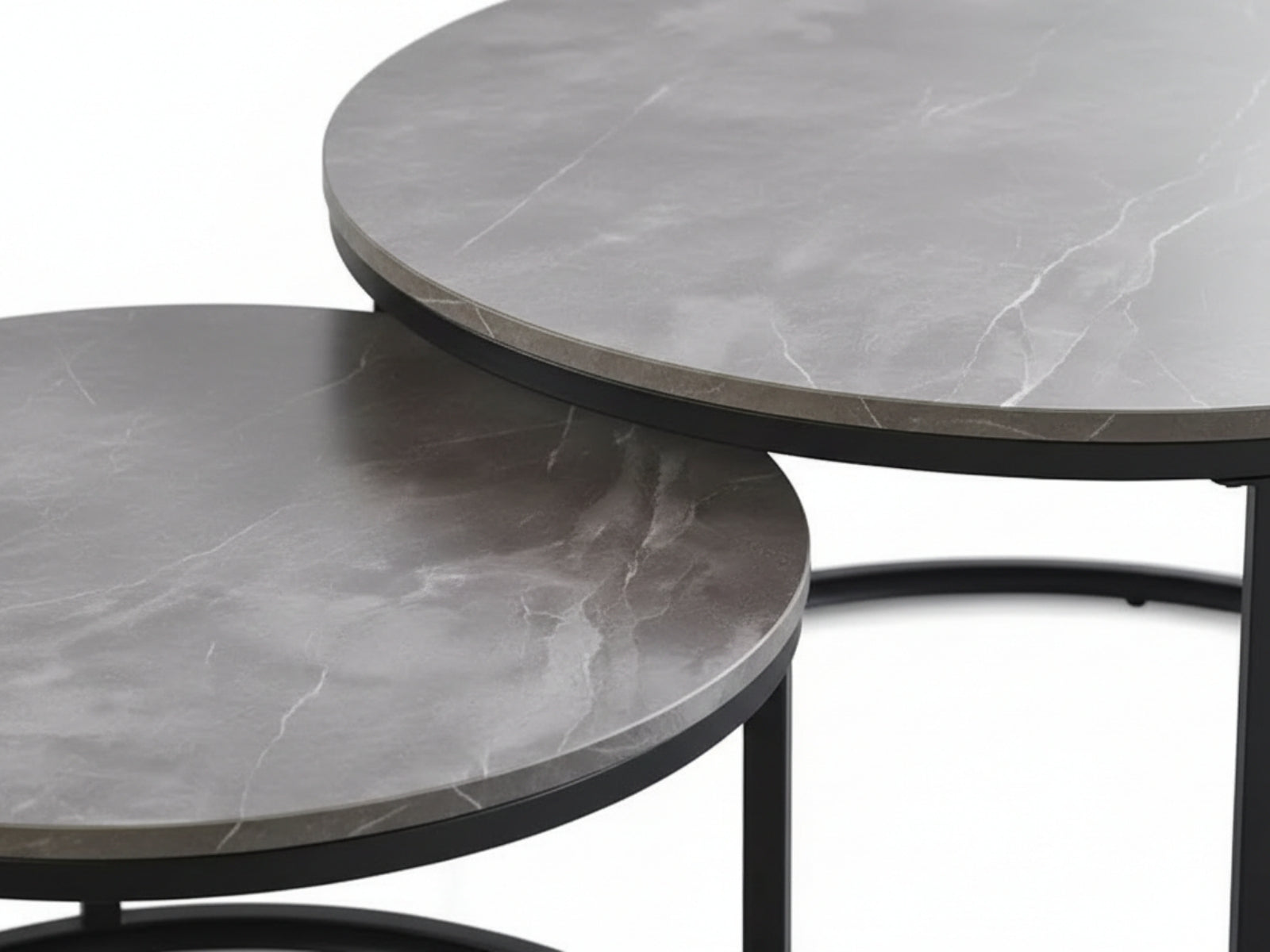 Coffee Table Set | Marble Grey | Stackable Space-Saving Design