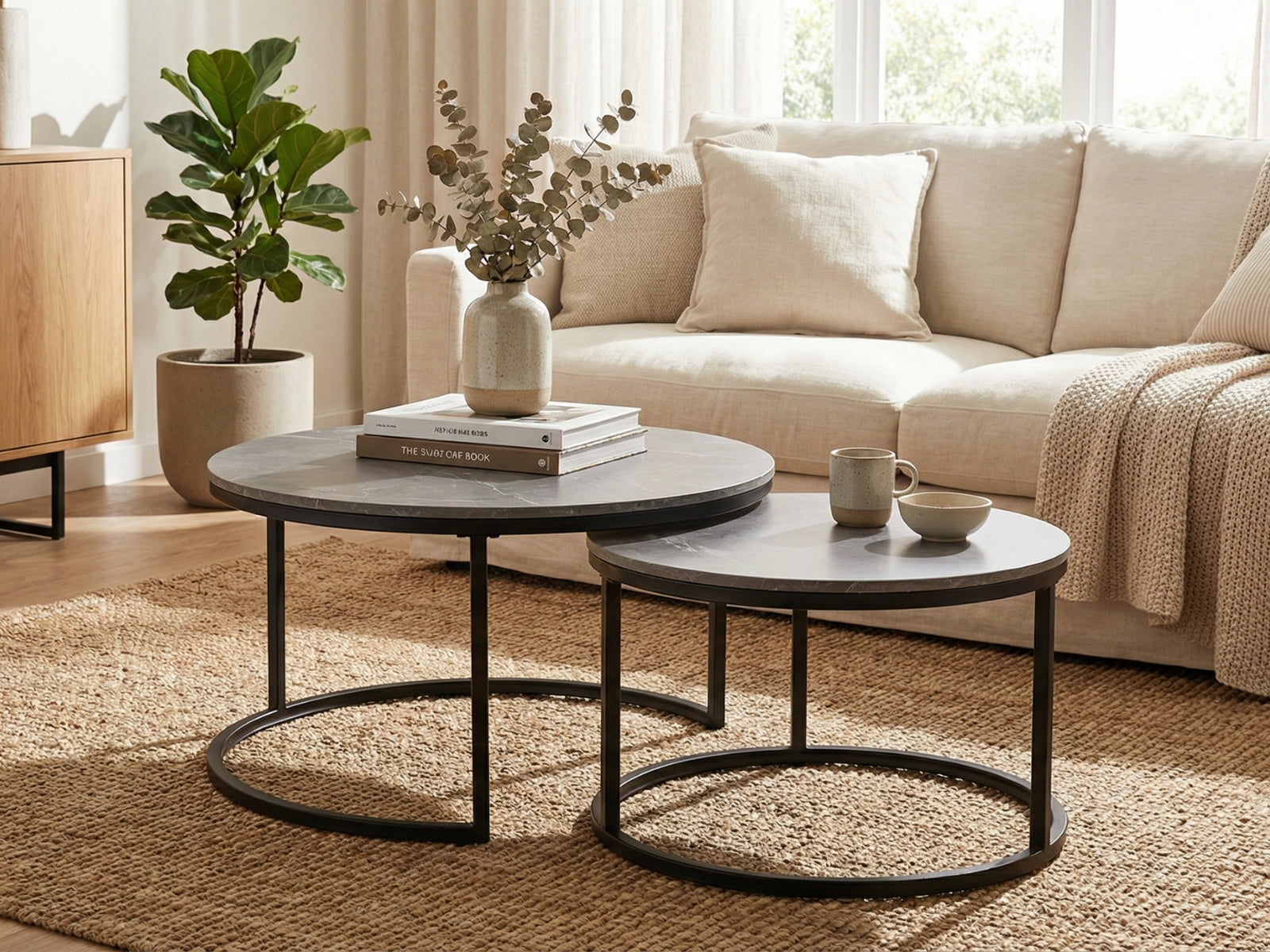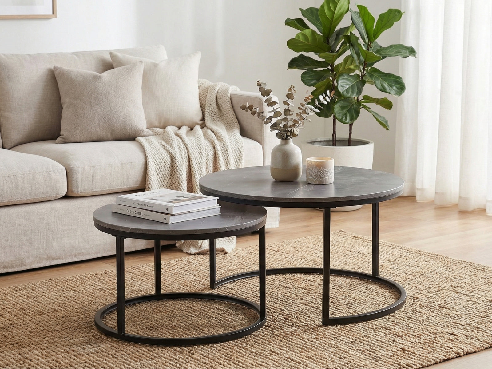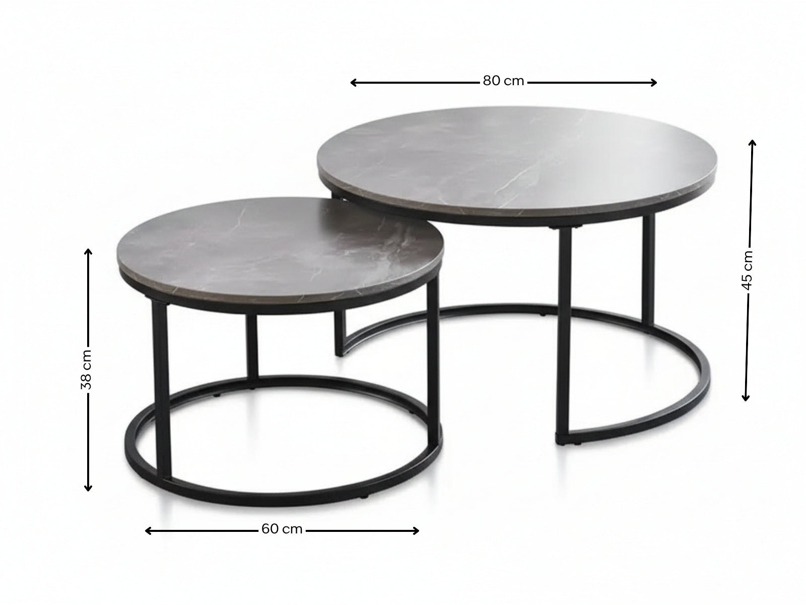 Coffee Table Set | Marble Grey | Stackable Space-Saving Design