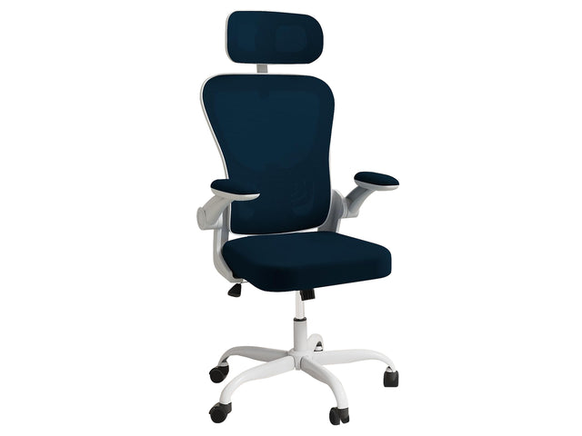 If you spend a lot of time in front of your desk, you'll need such a comfortable and functional office chair. High mesh back supports your entire back, neck and head, at the same time, bringing a cool using experience. A large, cushioned seat relieves fatigue from a long time sitting. Best of all, our desk chair is highly adaptable to your preferences. The seat, lumbar support and headrest can all be adjusted within a certain height range for maximum comfort. Armrests with foam padding are ideal for resting your arms and can be flipped up for space saving. The star base with five nylon castors allows 360° smooth mobility. To add more fun, users can adjust the tilted angle of the backrest to enjoy rocking back and forth. Start a productive but relaxing day from now on!