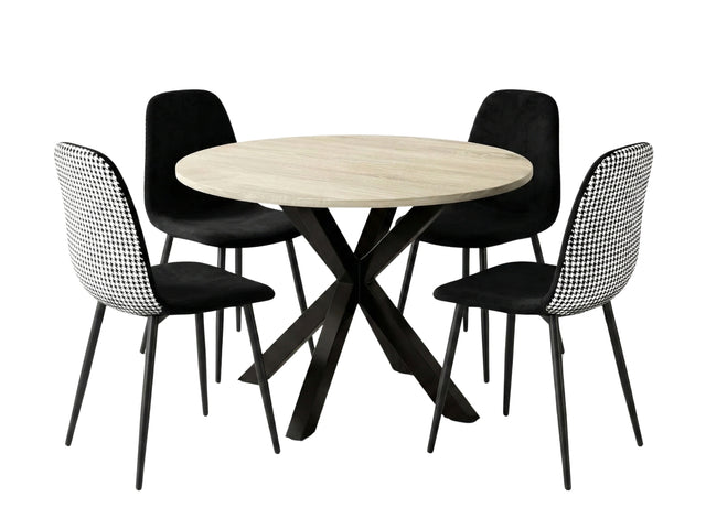 Elsie Round Dining Table - 110 cm & Axis Velvet Dining Seat x4 Houndstooth New (Combo)
