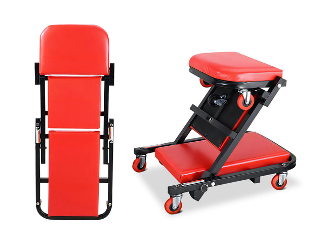 This garage creeper offers 2 in 1 creeper and stool design, simply interchange the position between z-shape or flat as per your need. Its slightly raised headrest provides a healthier position and good rest. Featuring 6 calibrated ergonomic wheels the wheels rotate 360° for easy manoeuvrability and effortless performance, sway in and sway out with ease. The garage creeper is made of high-quality steel and PU material. It offers no less than 4cm of thick cushioning, which creates a comfortable base for easy access and movement during your maintenance tasks. Built very light in weight, just fold it up and store it when not in use. Greatly flexible, and simply practical. Start working! Order your Creeper now.