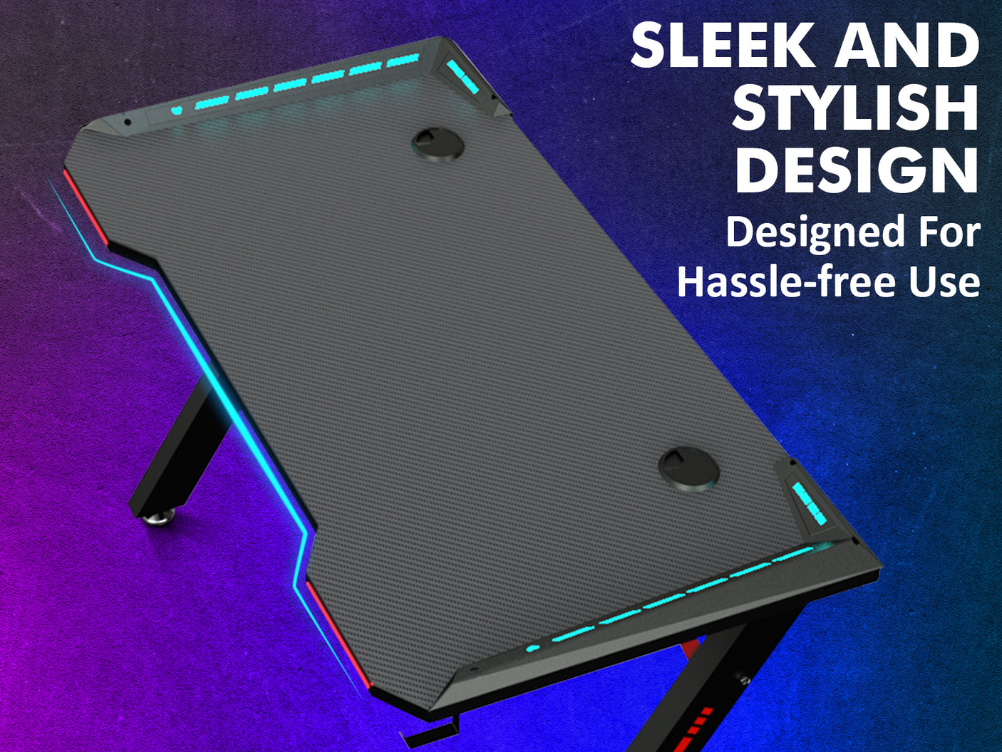 With Its Stable And Sturdy R Shape Design Legs, It Provides An Extremely Steady Construction.Carbon Fibre Surface With a Frosted Texture That You Always Feel Comfortable.The Wide Surface Is Large Enough To Accommodate All Your Gaming Gear.Built-In Colorful Rgb Lighting Effect That Increase The Game Atmosphere .It Also Configure An Earphone Hook To Keep Your Desktop Tidy.Create Your Own Gaming Arena At Home With Our Gaming Desk For The Perfect Gaming Experience.
