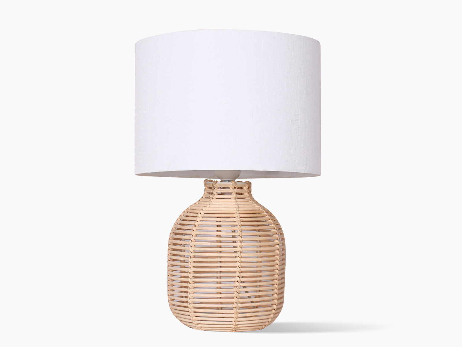 A blend of linen and polyester makes up the lampshade, in a white finish to diffuse a soft glow of light throughout your home. Naturally occurring tonal markings on the fabric complement the organic look of the rattan base.