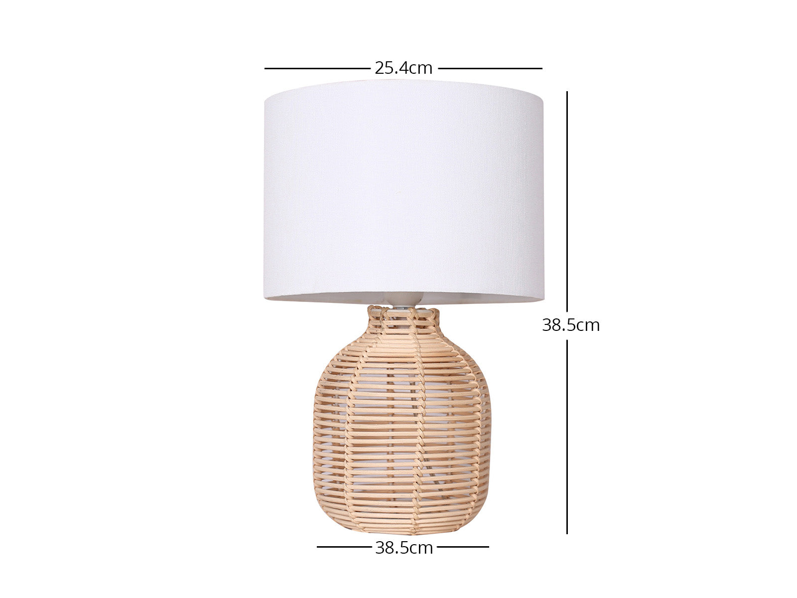 Materials: rattan base, linen & polyester shade