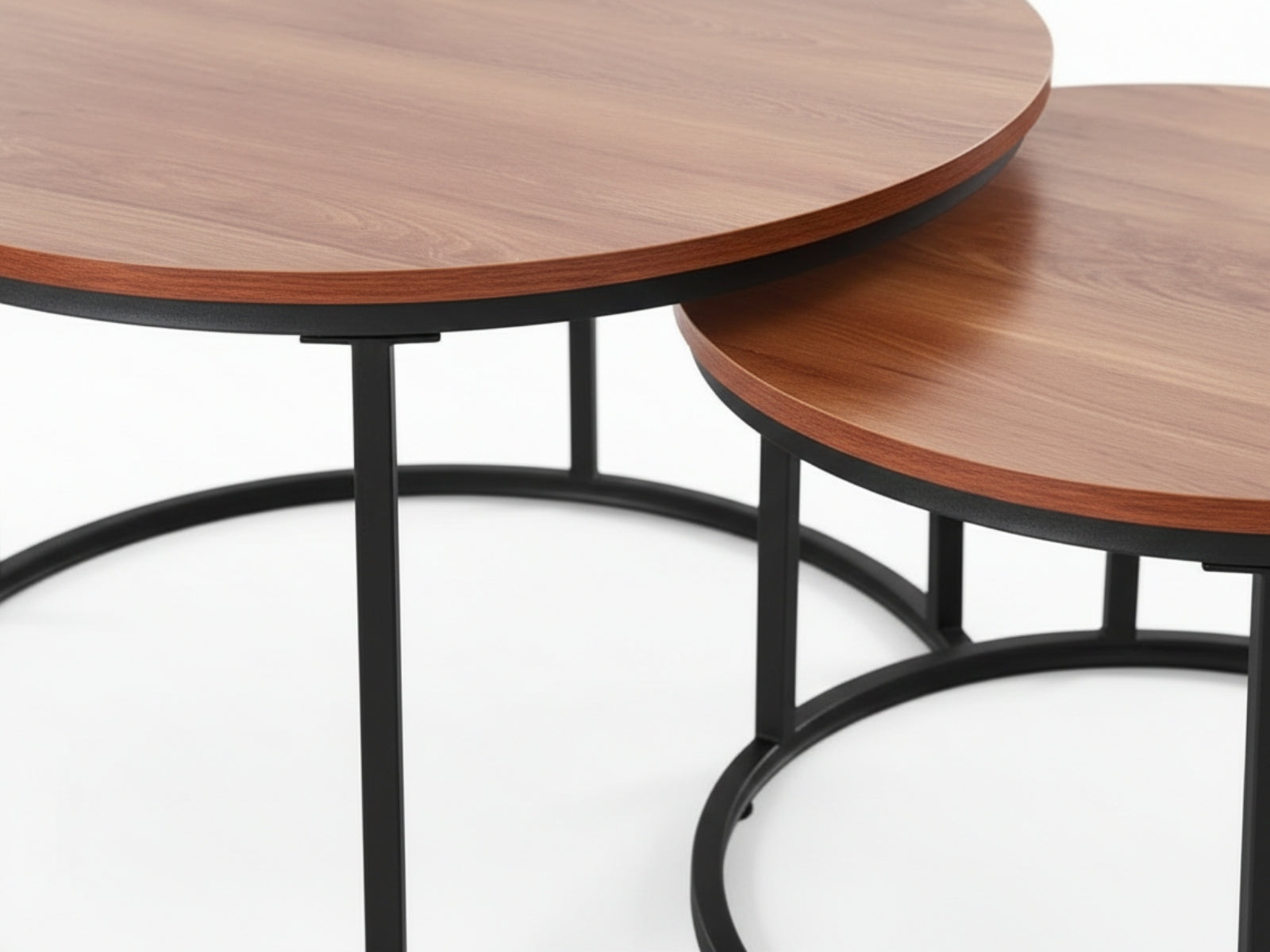 Add modern style and function to your space with this stackable Nesting Coffee Table set. The walnut color tabletop made of 1.6 cm MDF panel and the black metal frame bring a sleek look. Use them together to save space or apart for extra surface area. Strong, simple, and stylish—perfect for any modern living room.
