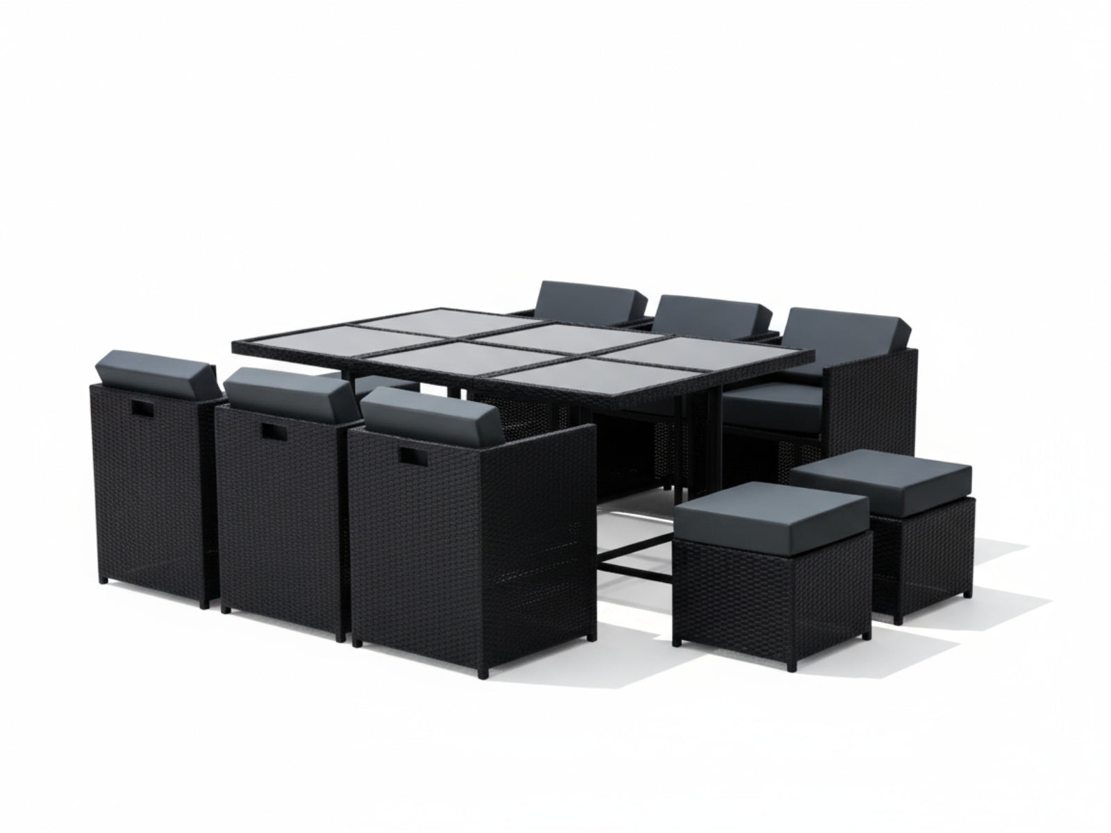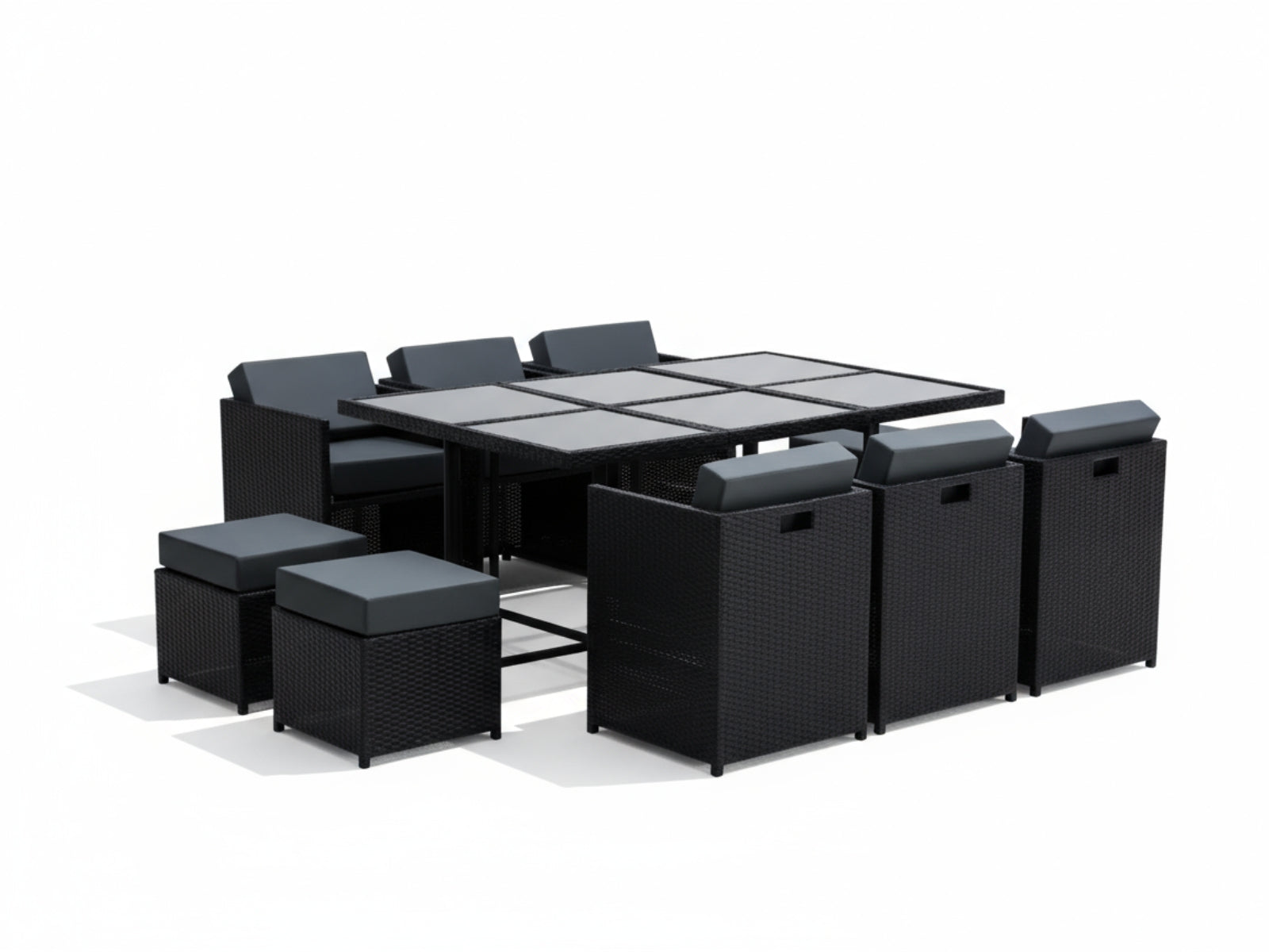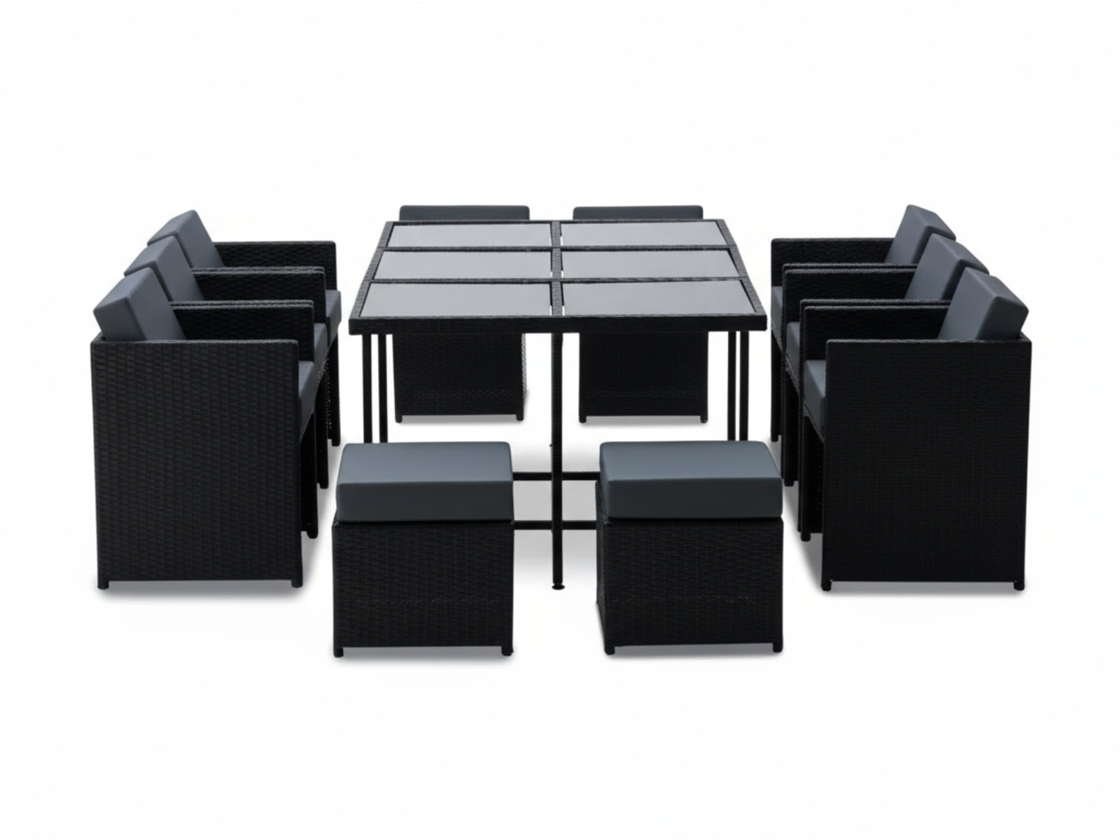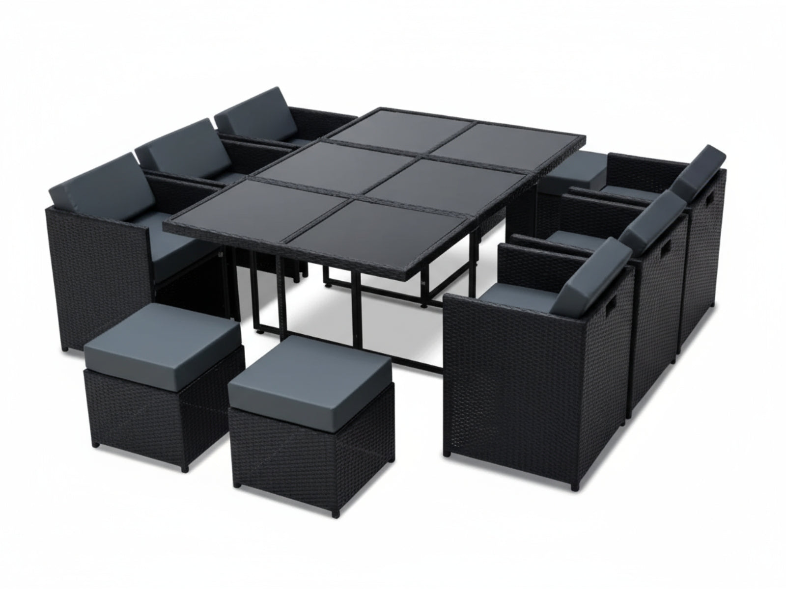 Transform your outdoor space with the Genoa 11-Piece Aluminium Outdoor Dining Set. Designed for comfort and durability, it features a UV-resistant PE wicker finish and a heavy-duty aluminium frame. The 5mm tempered glass tabletop adds a modern touch. 10cm-thick high-density foam cushions ensure ultimate relaxation. Each cushion cover is removable, washable, and water repellent. This set also includes three interchangeable cover colours — beige, grey, and red. It's offering a stylish, versatile setup for any outdoor occasion. Get ready for the coming Spring and Summer! Purchase them now and get it delivered to your doorstep!