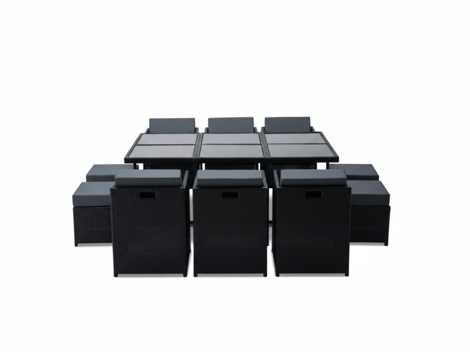 10 Seaters Set Configuration: 1 Table, 6 Chairs, 4 Ottomans