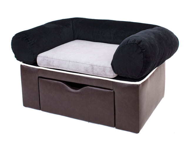 Pet Sofa Bed | Brown + Black | PU Leather & Storage Drawer