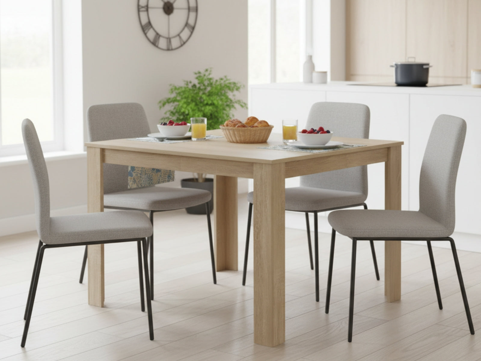 Discover the Skog Collection – where modern minimalism meets natural oak warmth. Perfect for stylish, practical New Zealand homes. The Skog Dining Table combines clean, modern design with the warmth of a natural oak finish. Made from durable 1.5 cm particleboard, it seats 4 to 6 people comfortably. The rich wood grain adds timeless charm, while heavy-duty fixings and an anti-slip base provide lasting strength and stability. Measuring 120 cm, it’s ideal for kitchens, dining rooms, or open-plan areas in Kiwi homes. Pair it with the Skog Dining Bench for a complete, natural look that suits any contemporary space.