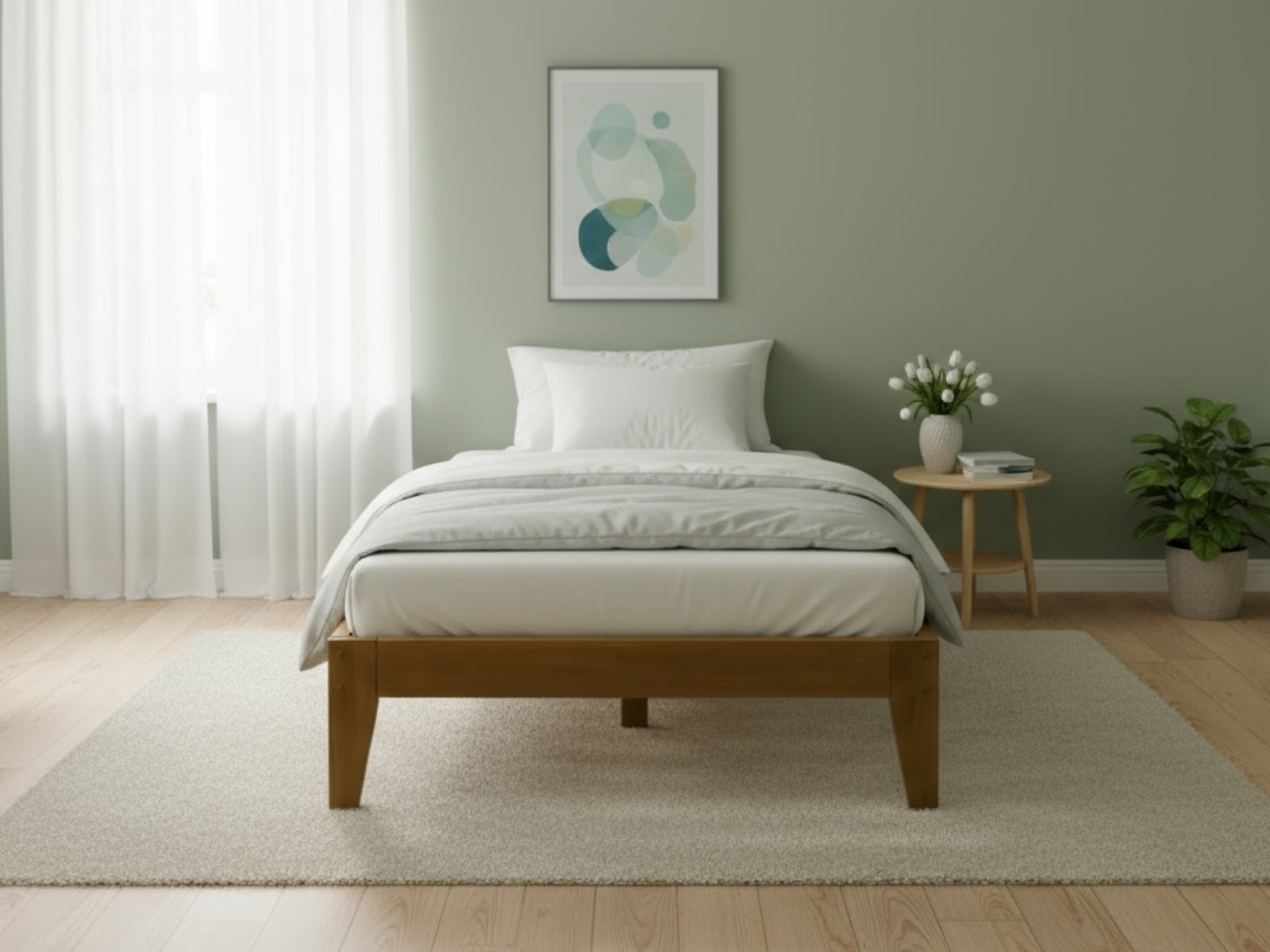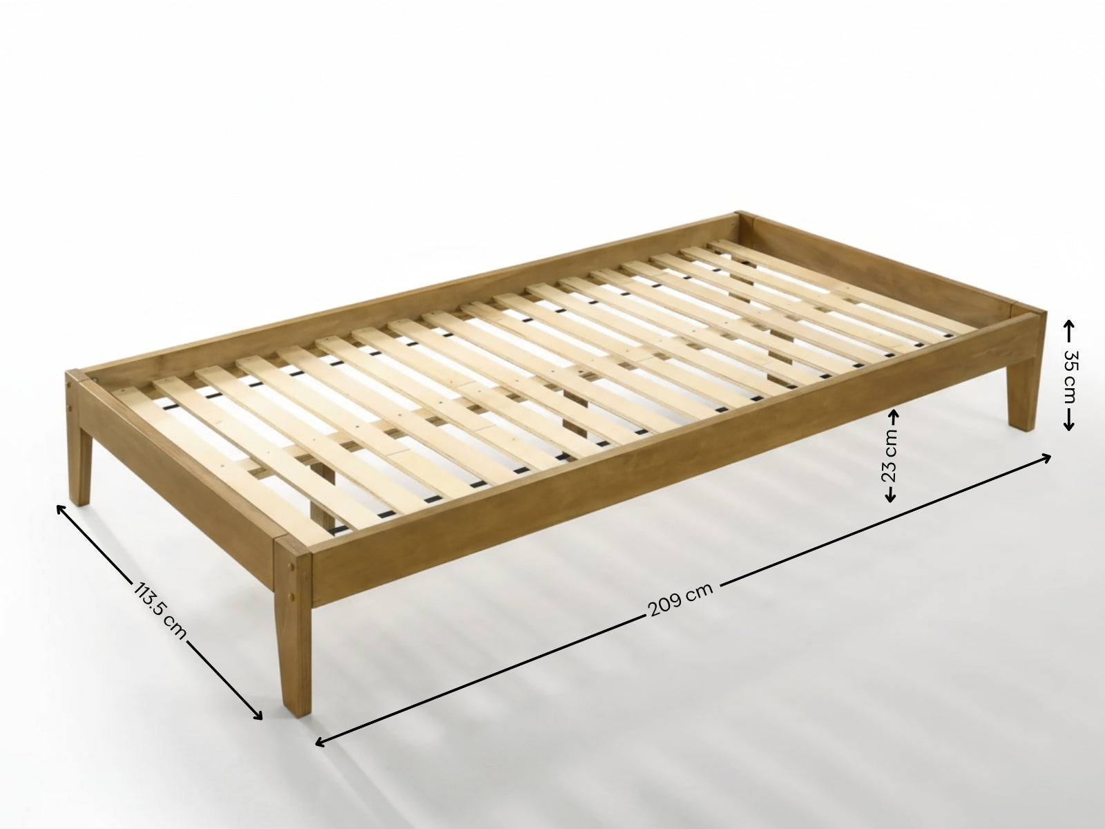 King Single Bed Frame | Oak Finish | Solid Extra-Thick Pine Wood