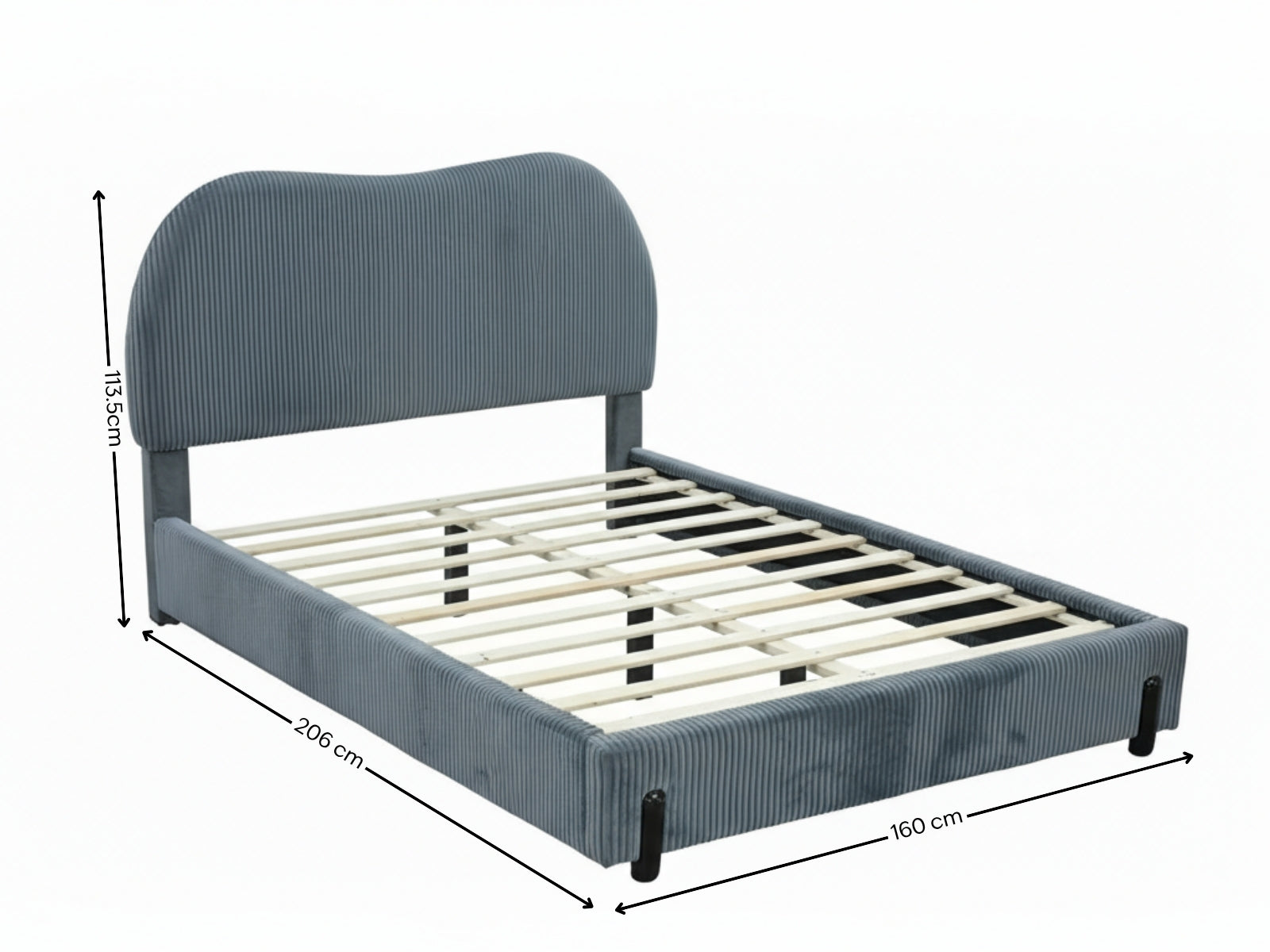Double Bed Frame | Dark Grey Corduroy | Scandinavian-Inspired Design