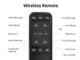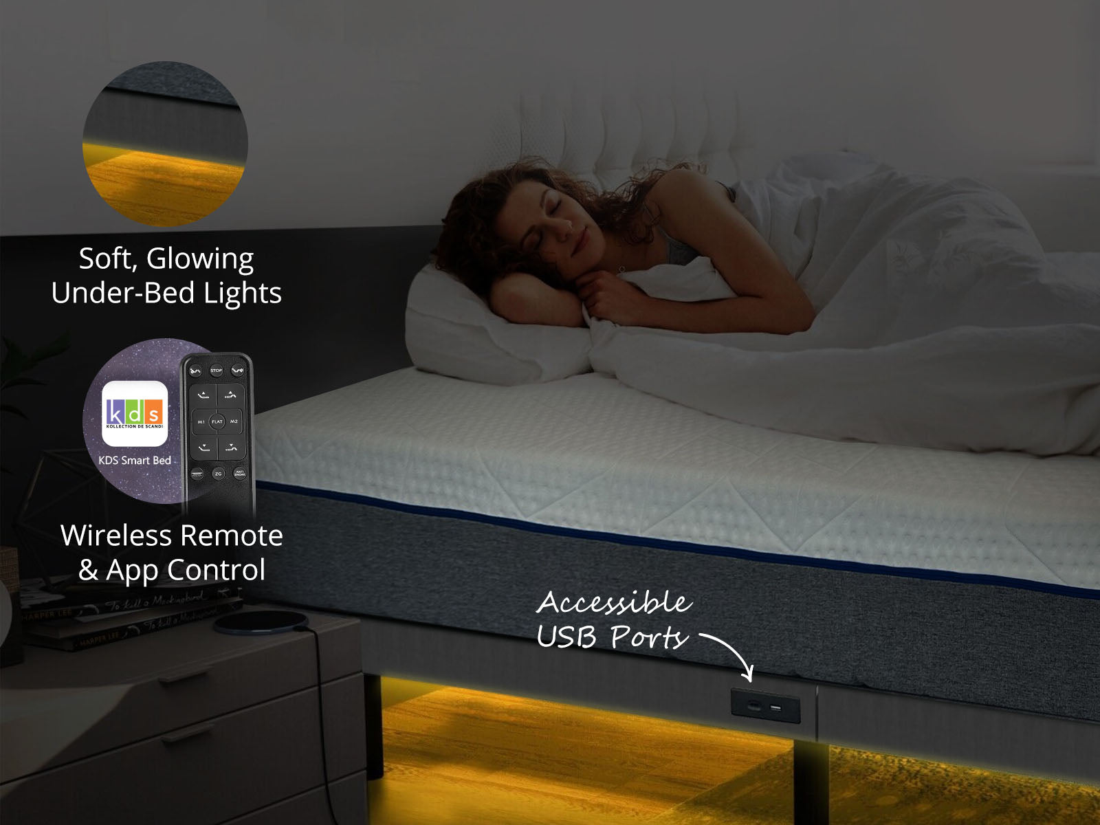 Experience next-level comfort with the Aqua200M Electric Bed Base. This electric bed base features adjustable head (0–60°) and foot (0–40°) positions. You can tailor your sleep or lounging experience with ease. With the wireless remote and app control. You can easily manage massage settings, under-bed lighting, and save your favourite positions. With a quiet motor and sturdy metal construction, this bed offers lasting support. USB ports keep your devices charged, while health benefits may include reduced snoring, acid reflux, and sleep apnea. The Aqua200M Electric Bed Base brings comfort, convenience, and wellness to your bedroom.