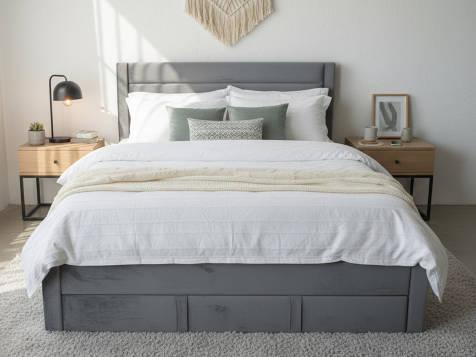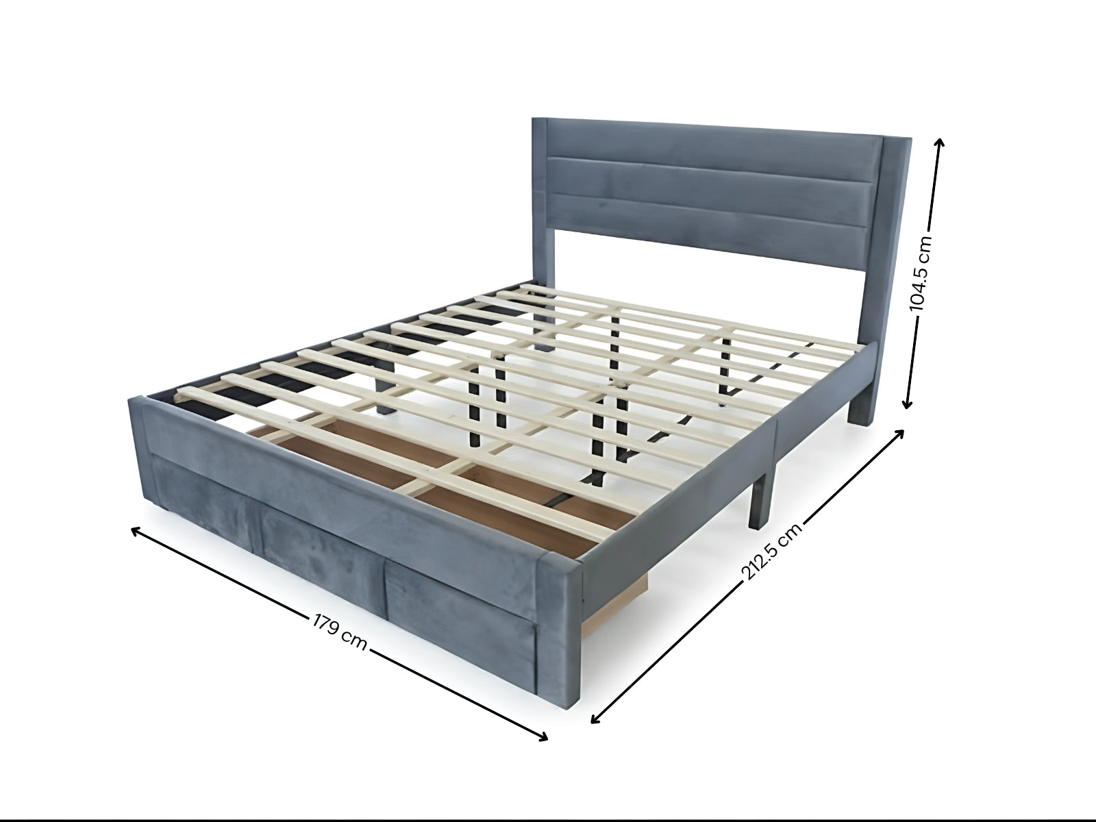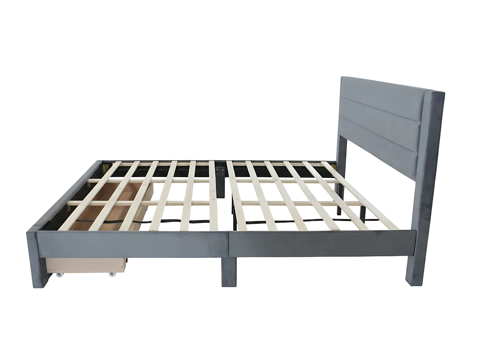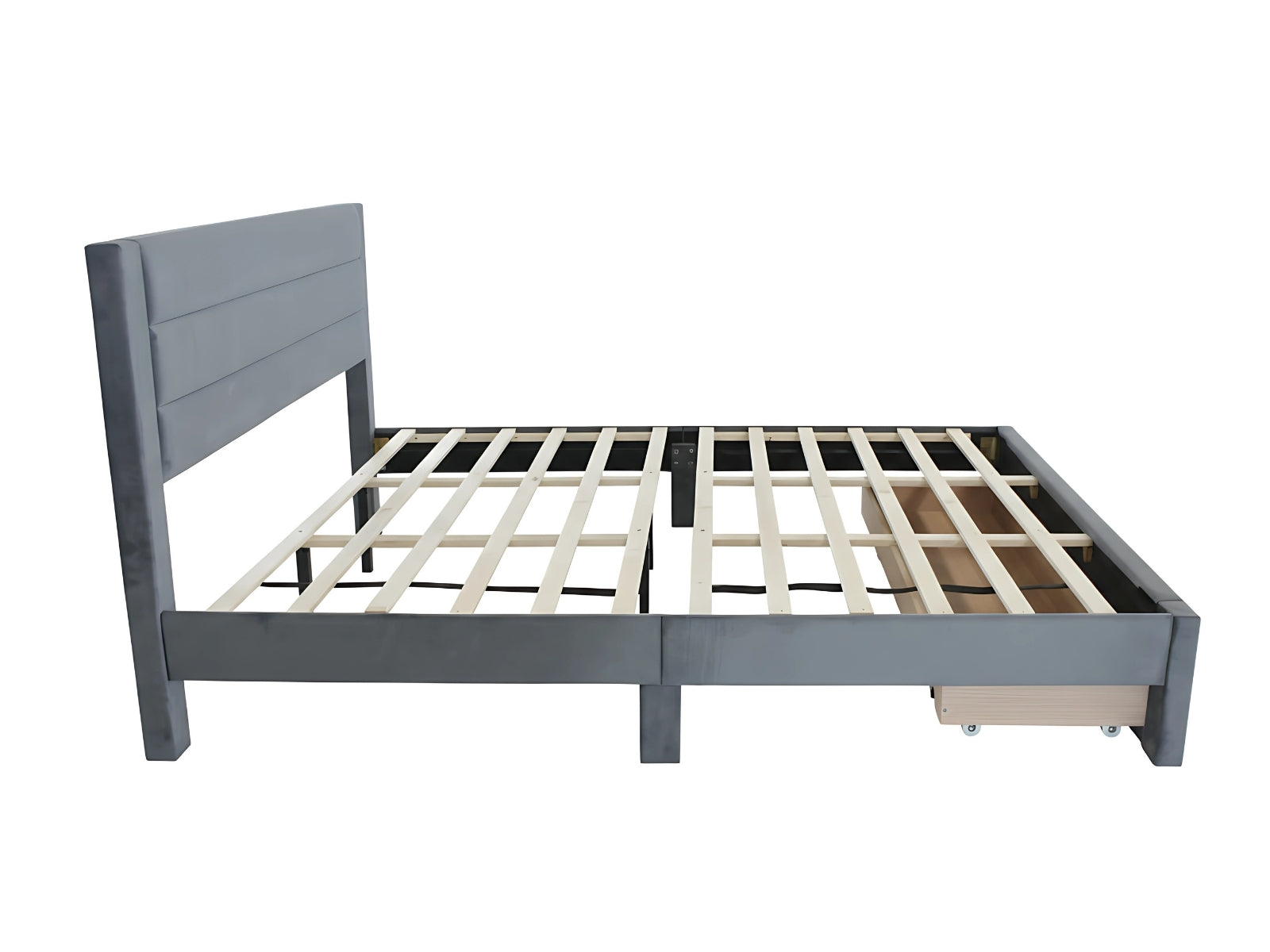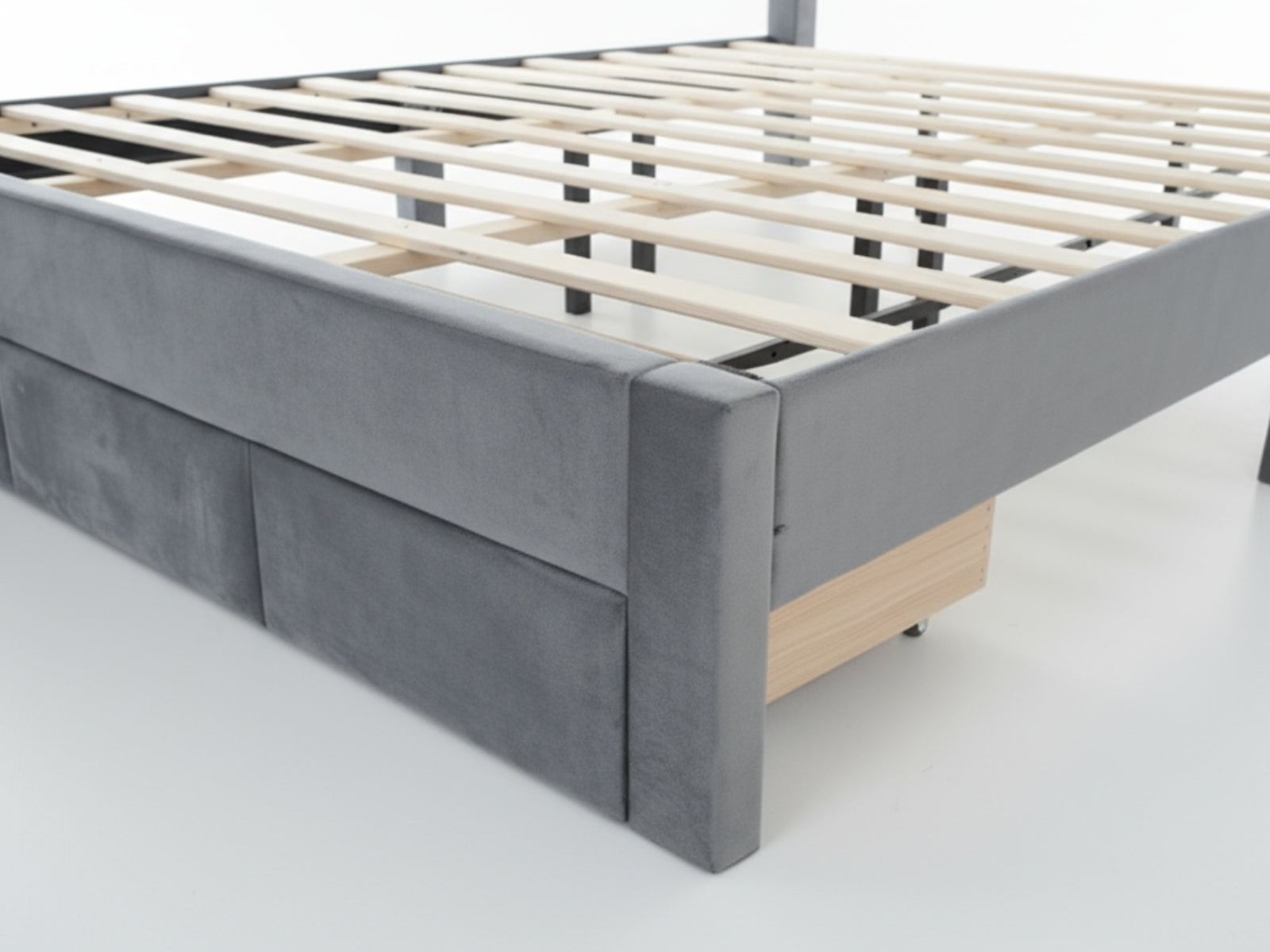 King Bed Frame | Charcoal Velvet Fabric | Bed with Storage Drawer