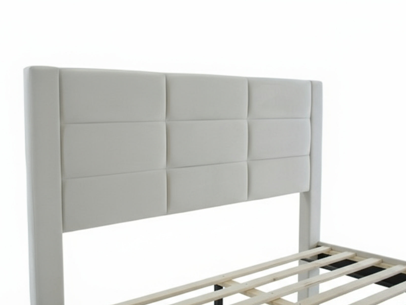 Double Bed Frame | Beige Velvet Fabric | Bed with Storage Drawer