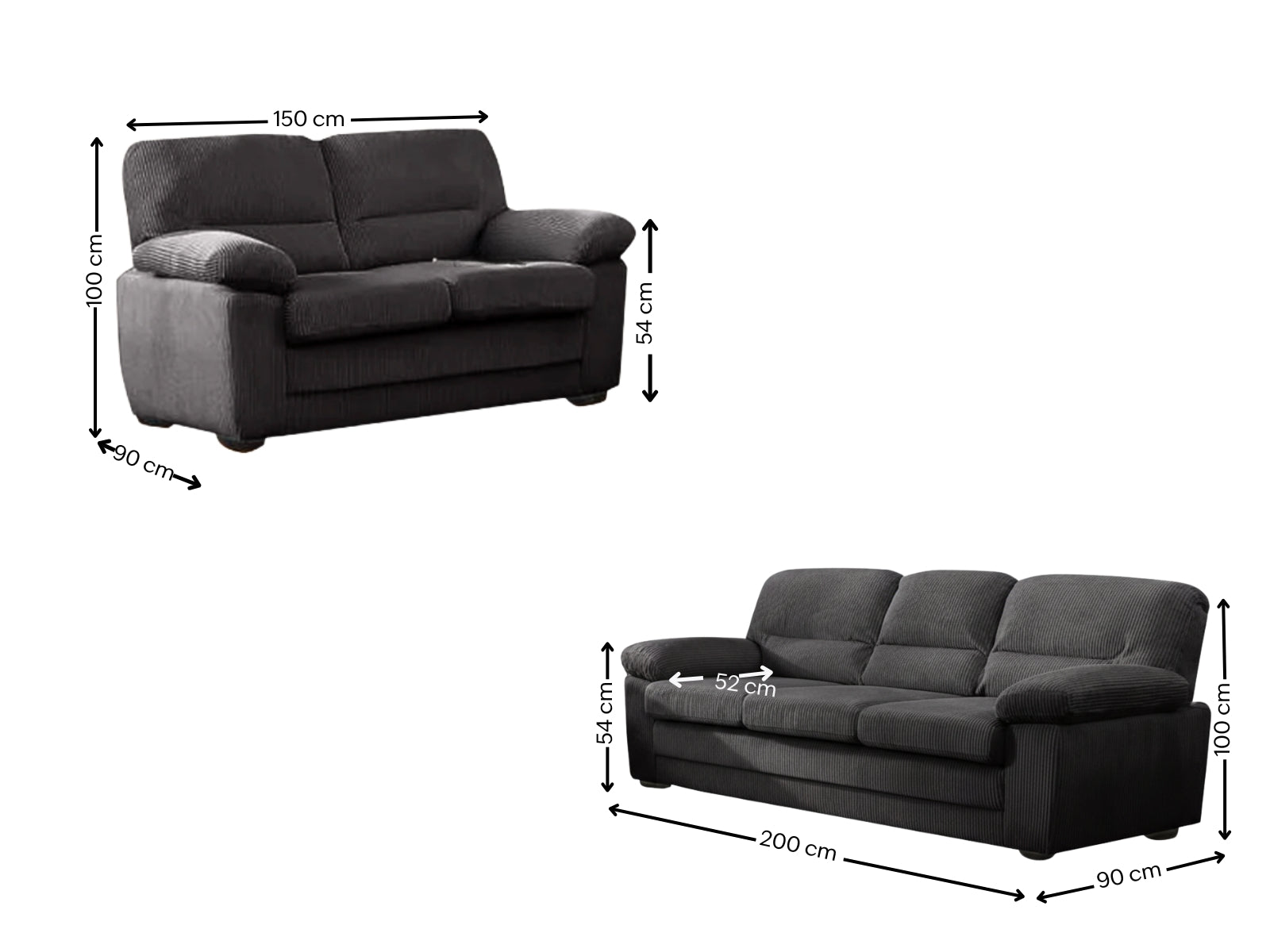 1 x Lincole Corduroy 2-Piece Sofa Set Dark Grey (flat-packed in 2 boxes)