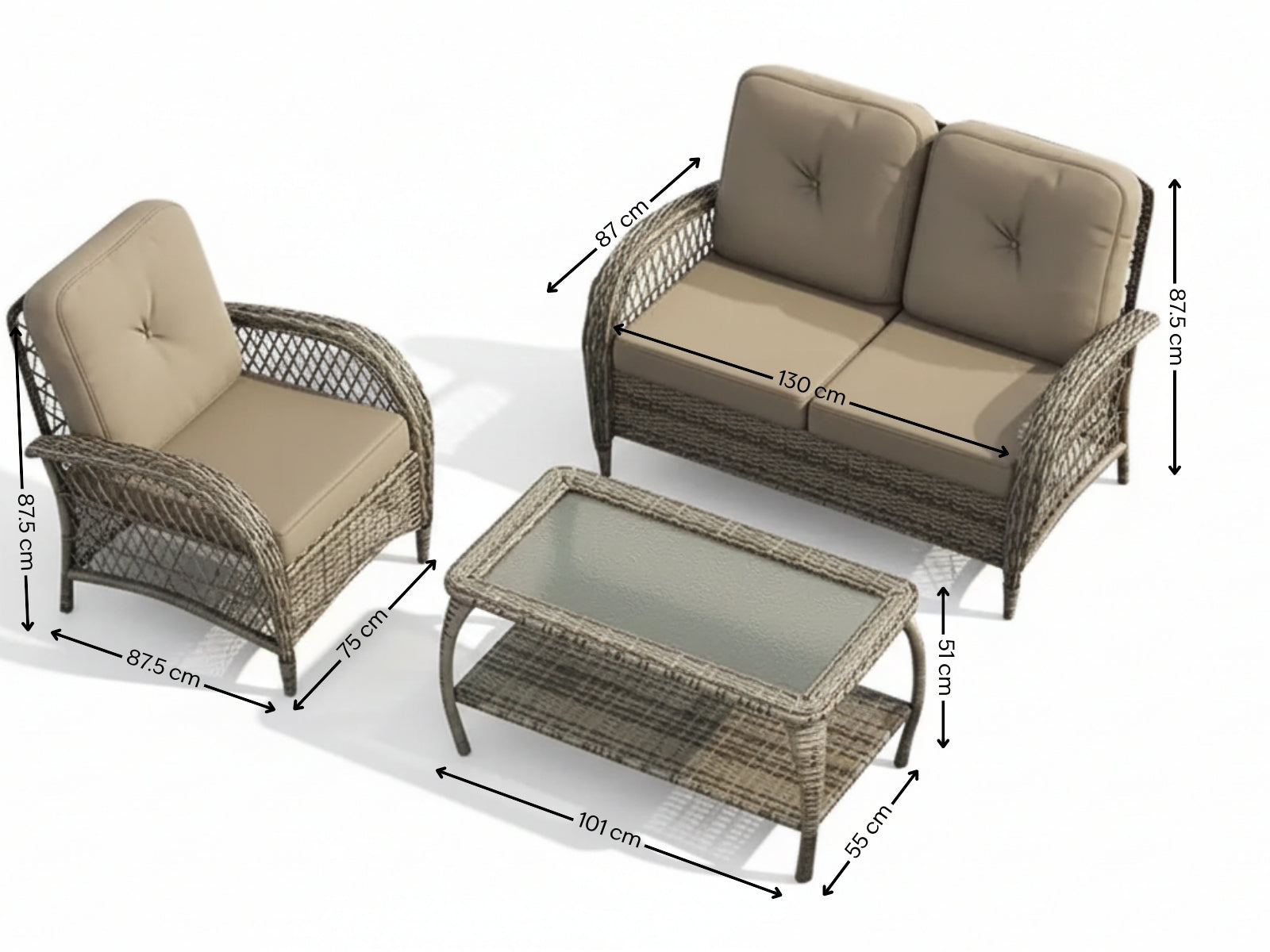 Loveseat: 130x87x87.5cm