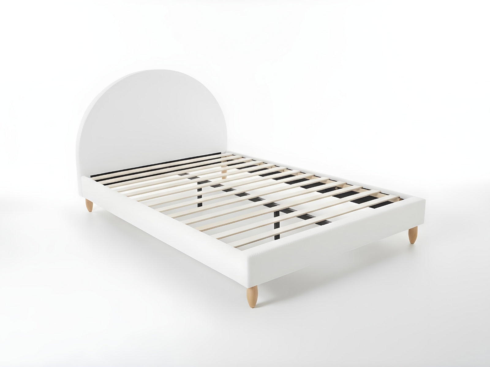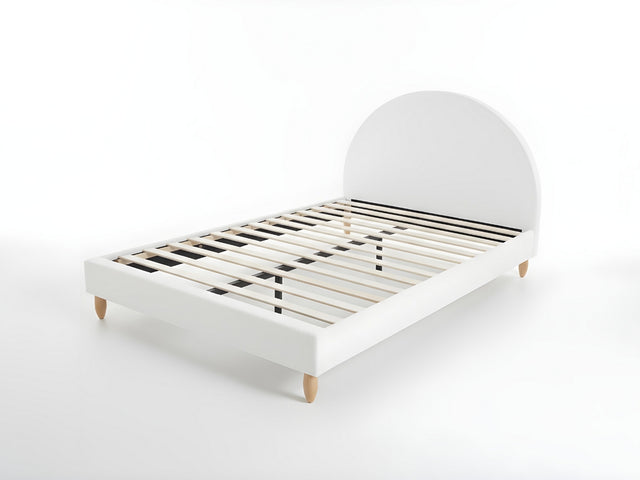 Double Bed Frame | White Teddy Fabric | Arched Headboard NZ