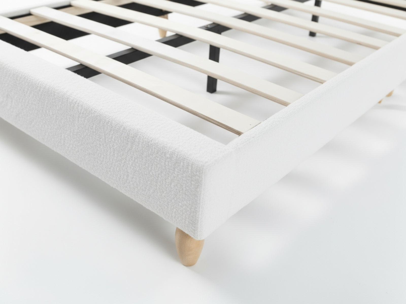 Material: Teddy Fabric + MDF + Plywood Slats + Wood Footboard Legs