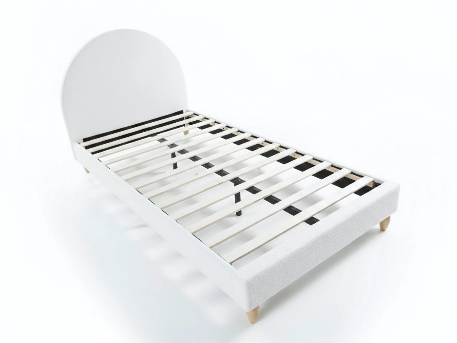 King Single Bed Frame | White Teddy Fabric | Arched Headboard NZ
