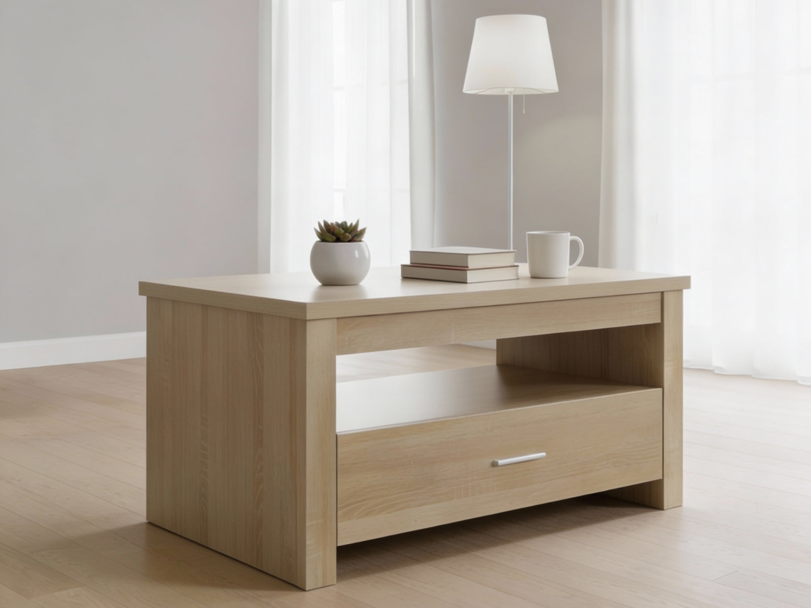 Bring functional style to your space with the Skog Collection. This Skog Coffee Table features clean lines, a woodgrain finish, and smart storage. Made from quality particleboard, it offers one spacious drawer and an open shelf to keep your space tidy. Sturdy, stylish, and easy to maintain—perfect for modern homes.