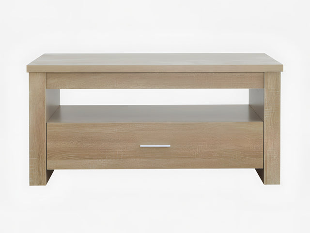 Coffee Table | Natural Woodgrain Finish | Pull-Out Drawer & Open Shelf