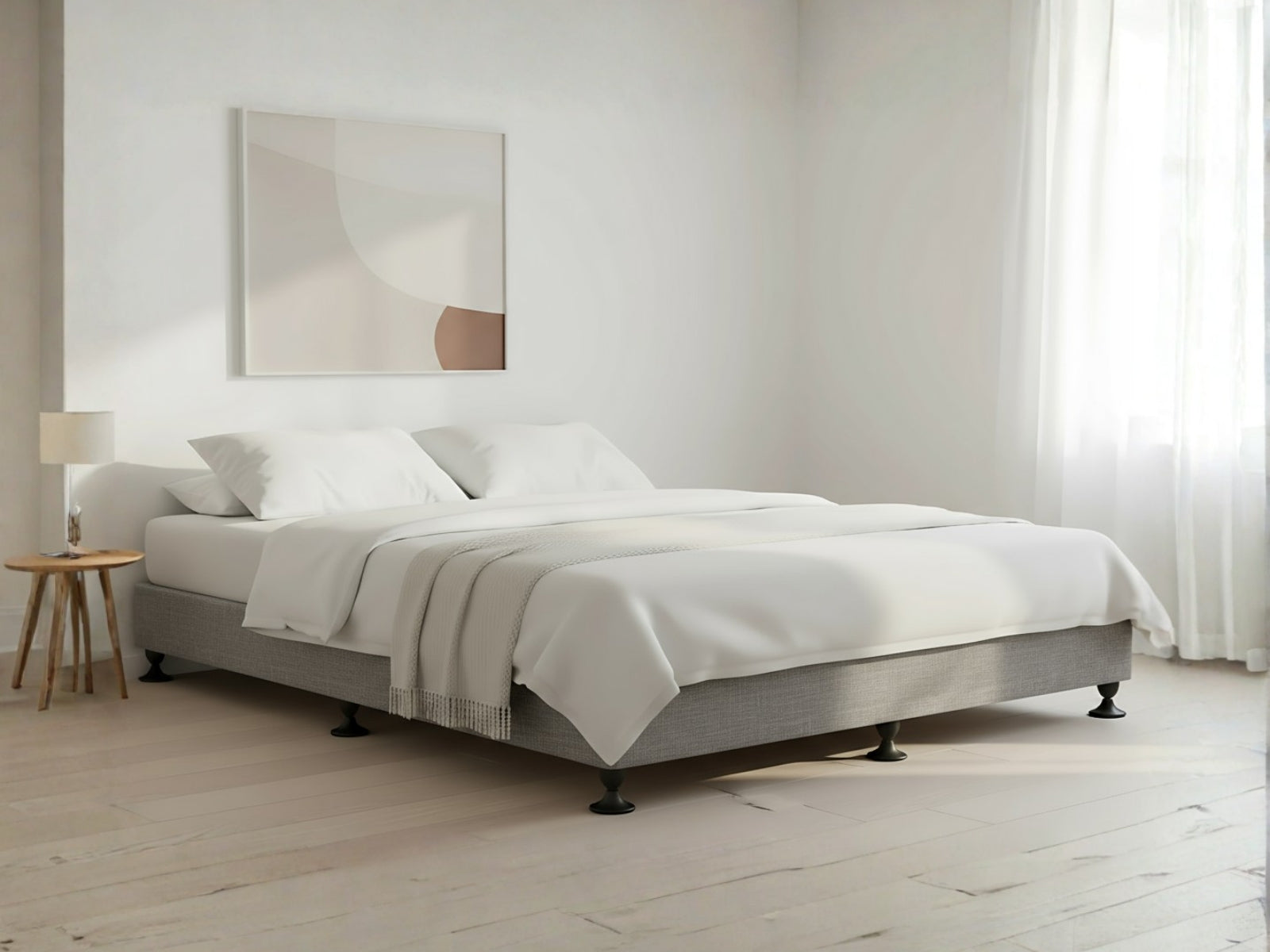King Bed Base | Grey Linen Fabric Cover | Easy Assembly