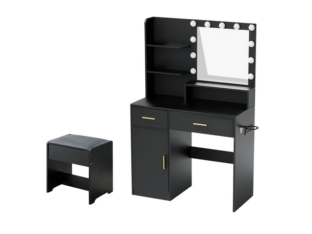 Makeup Vanity Desk Set with Mirror & Light - Black