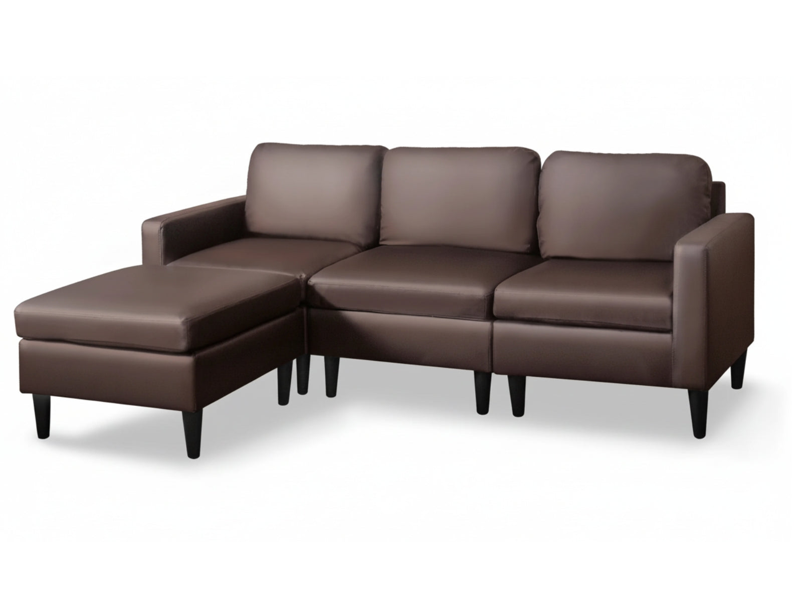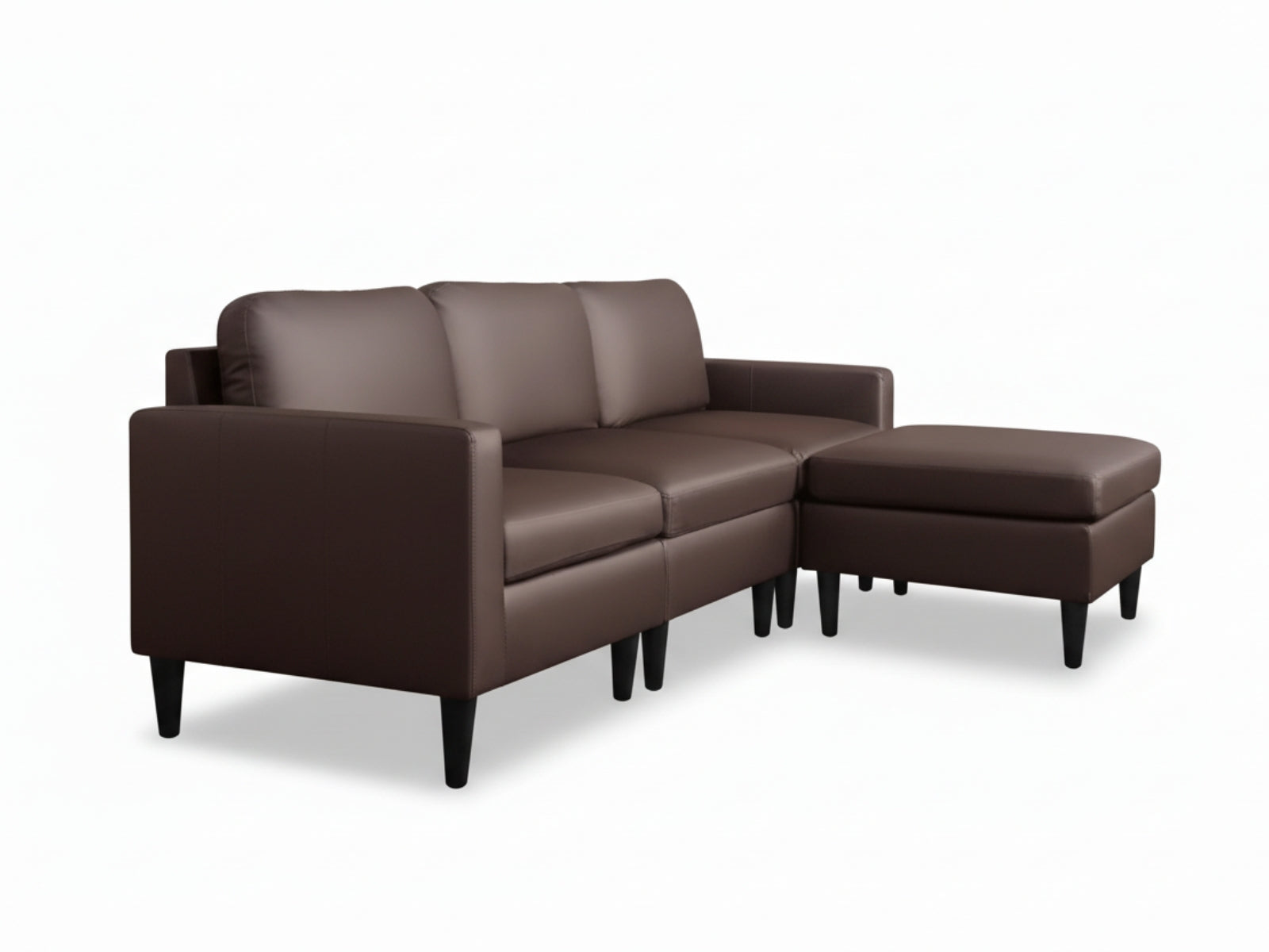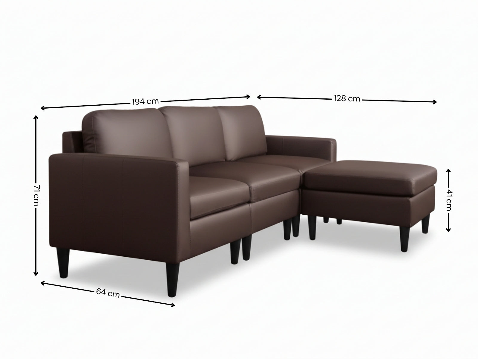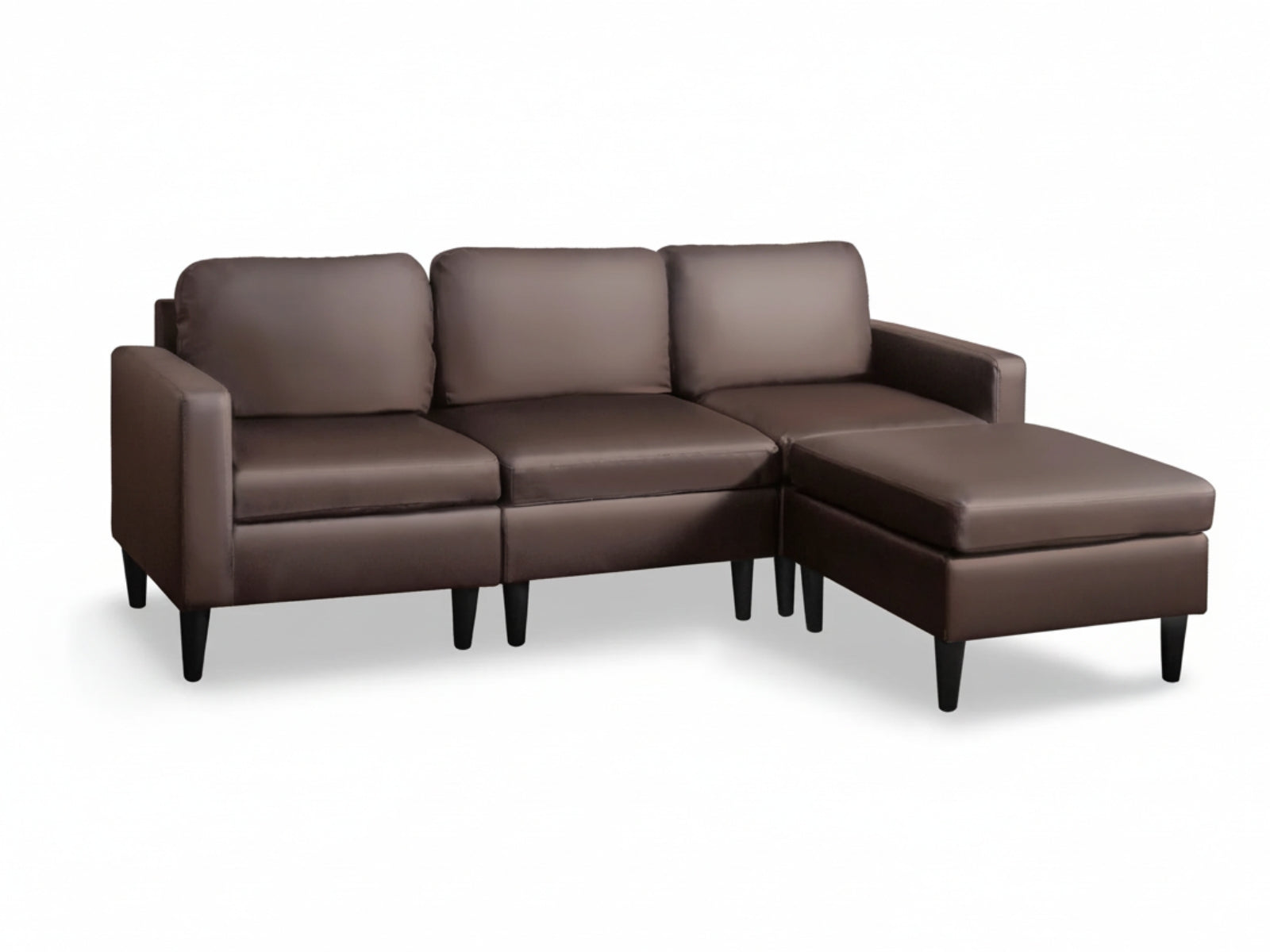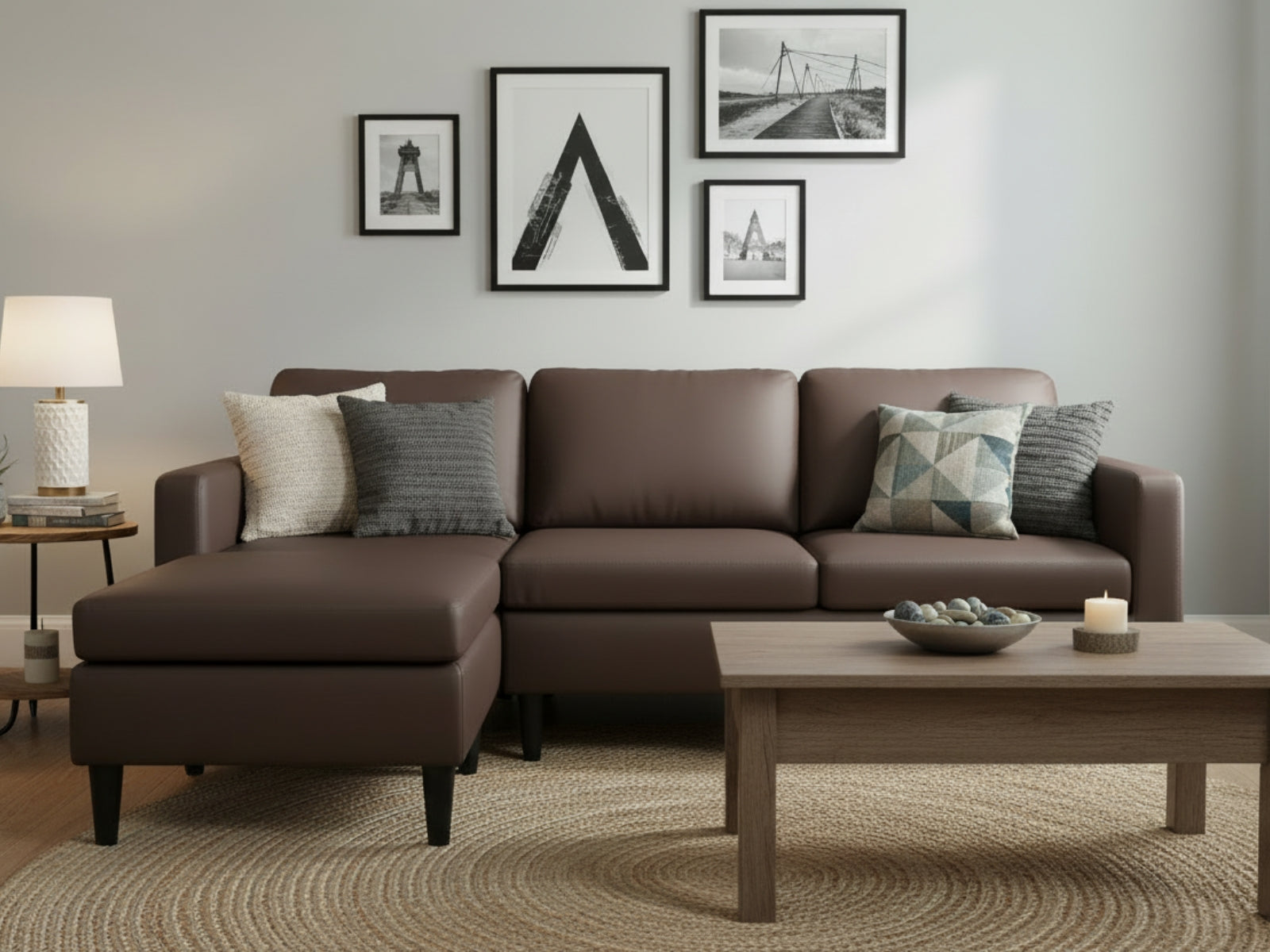 L-shaped Sofa Set | Brown PU Leather | Flexible Chaise Design