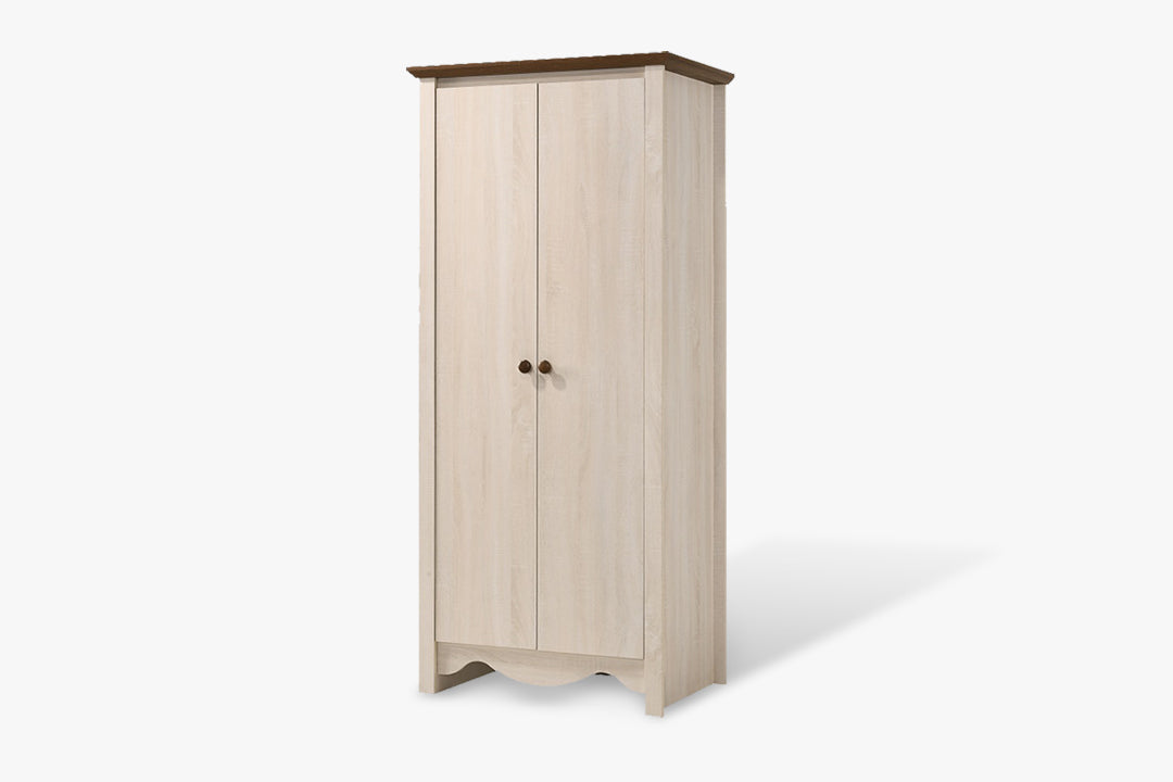 The Walden Bedroom Collection offers classic bedframes, drawers, and wardrobes designed to suit any bedroom. The Walden 2-Door Wardrobe blends modern and classic design for a charming look that suits both rustic and modern décor. With its walnut brown and white ash color combination, this wardrobe brings elegance and style to any room. It offers ample storage space, including a top shelf for folded clothes and a hanging rail for coats and jackets. Made from E2 particleboard, it is both durable and sturdy. Perfect for both modern and traditional interiors. The Walden range brings timeless charm and practical storage to your home.